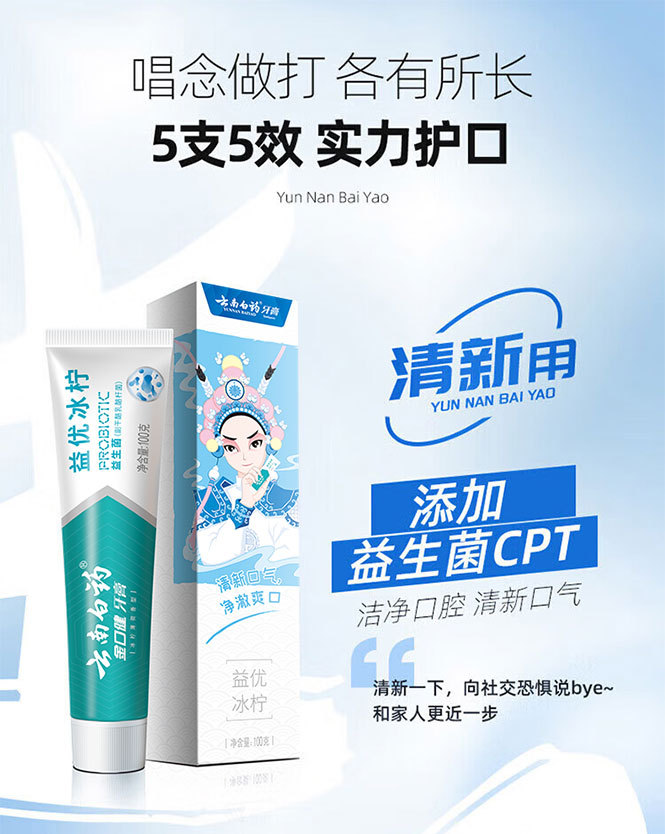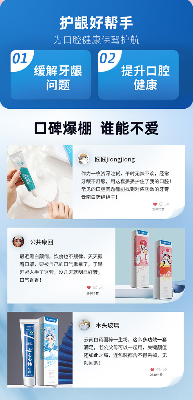 云南白药 【五效护口】国粹定制护龈清新净白祛渍牙膏家庭实惠装500g