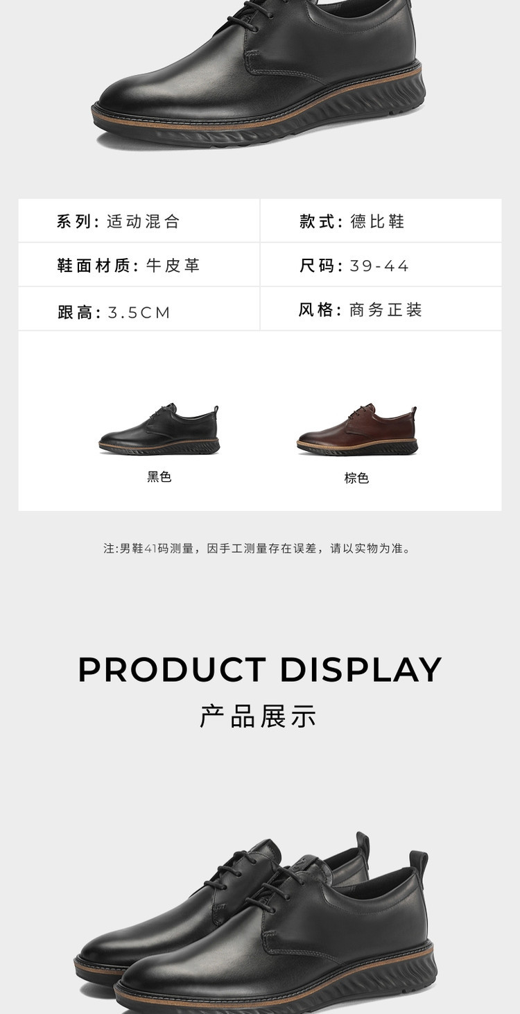 ECCO 【入会满减100】德比鞋商务皮鞋男英伦真皮低帮鞋836404