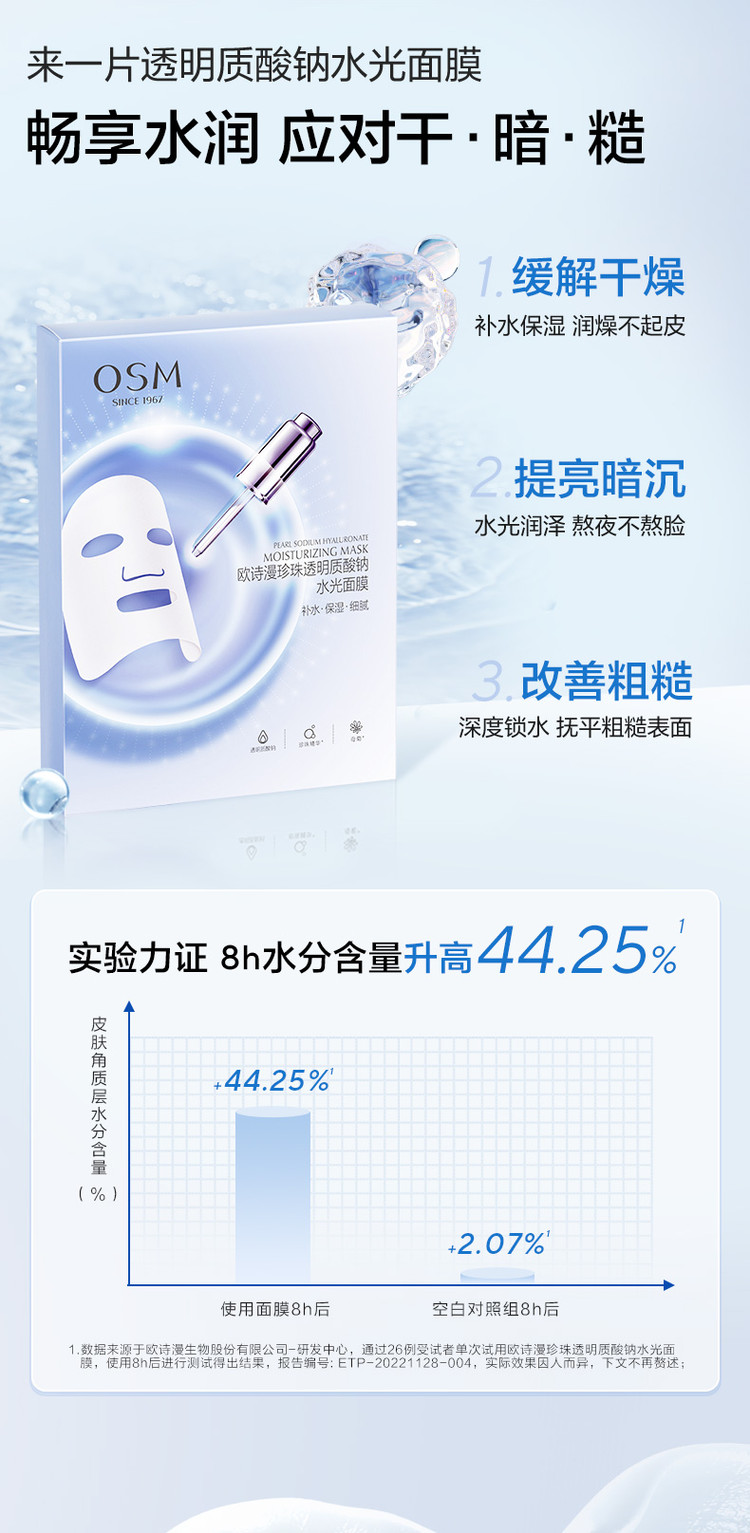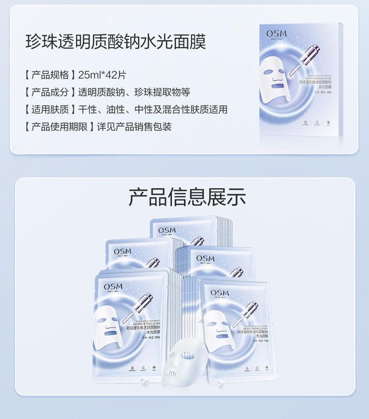 欧诗漫 【补水面膜42片】珍珠透明质酸钠水光面膜保湿面膜补水