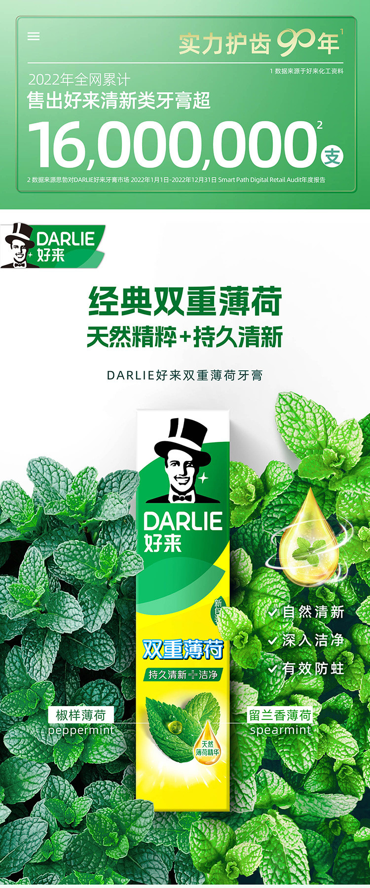 DARLIE 【多效护理】好来原黑人牙膏双重薄荷成人持久清新口气减菌防蛀
