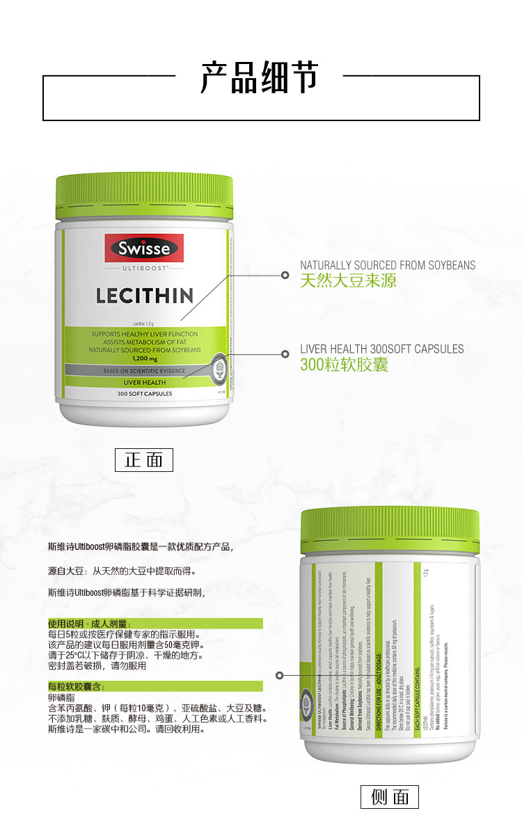 斯维诗 卵磷脂300粒加量装滋养中老年鱼油搭档洁净长辈身体强健体魄