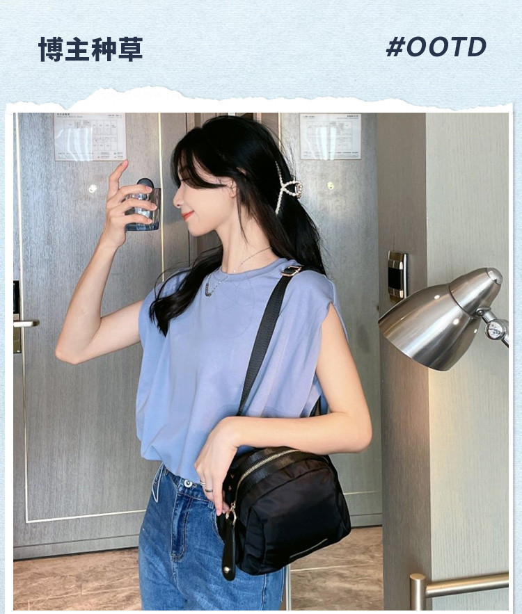 包包面料轻便透气性好,设计独特时尚,可以放水杯,太阳伞,化妆品等小物品,外出旅游旅行时背方便实用。如果拉链金属扣装饰用银色系会更好。