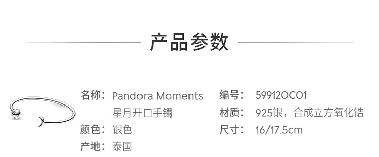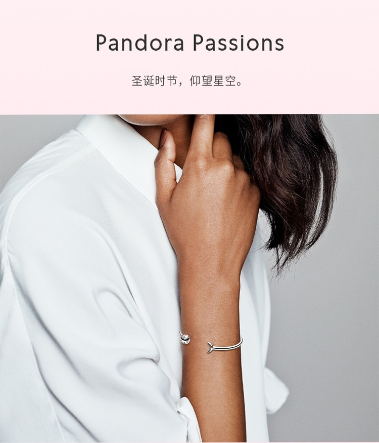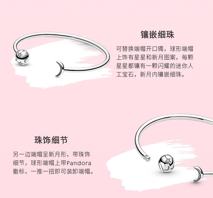 PANDORA 潘多拉星月开口925银手镯可叠戴手串轻奢高