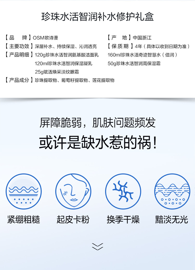 欧诗漫 【直播惊喜-深层补水保湿】珍珠水活智润洁水乳眼霜补水礼盒
