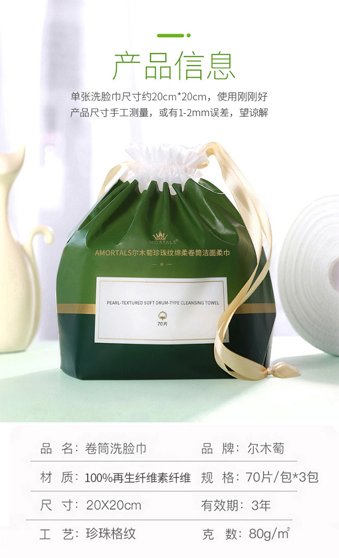 尔木萄 洗脸巾一次性卷筒式洁面巾加厚加大80g珍珠纹3包装