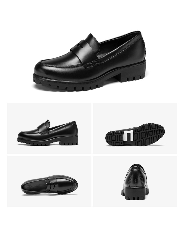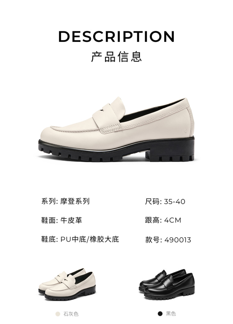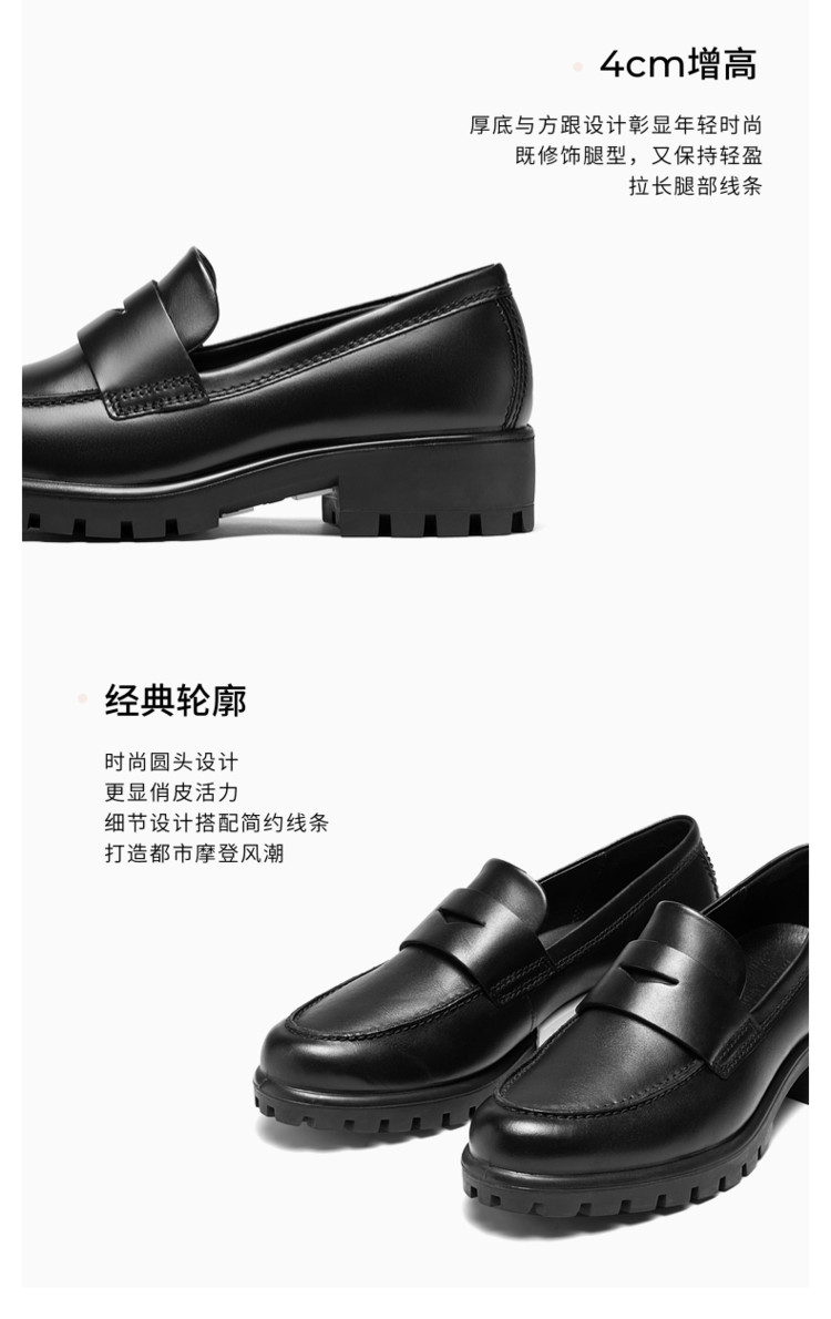 ECCO 乐福鞋女单鞋牛皮倪妮同款摩登490013