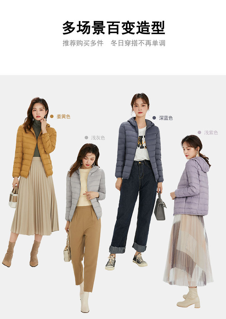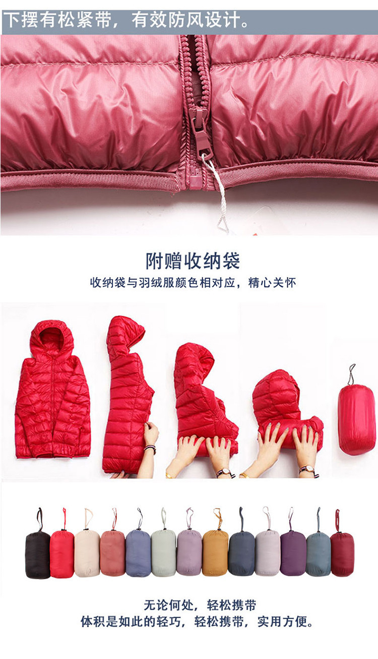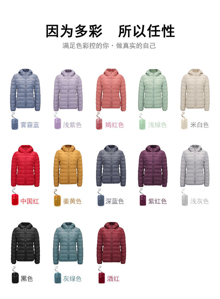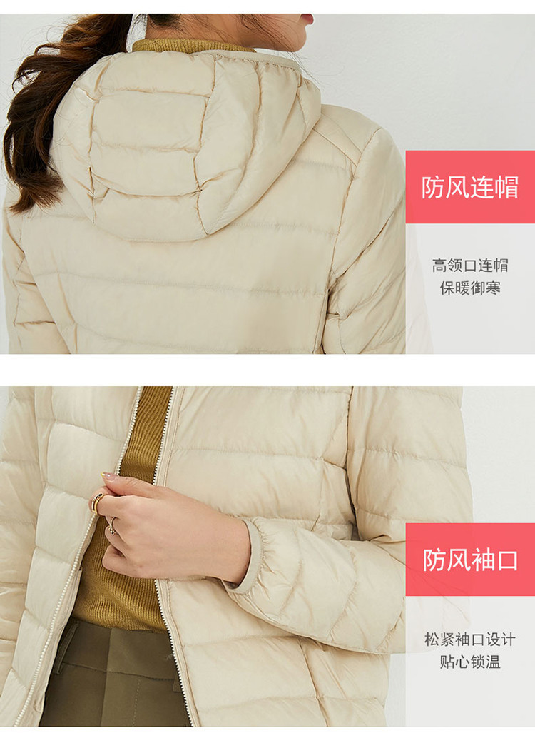 鸭鸭 【经典爆款】抗寒春秋保暖轻薄时尚纯色连帽女士羽绒服女
