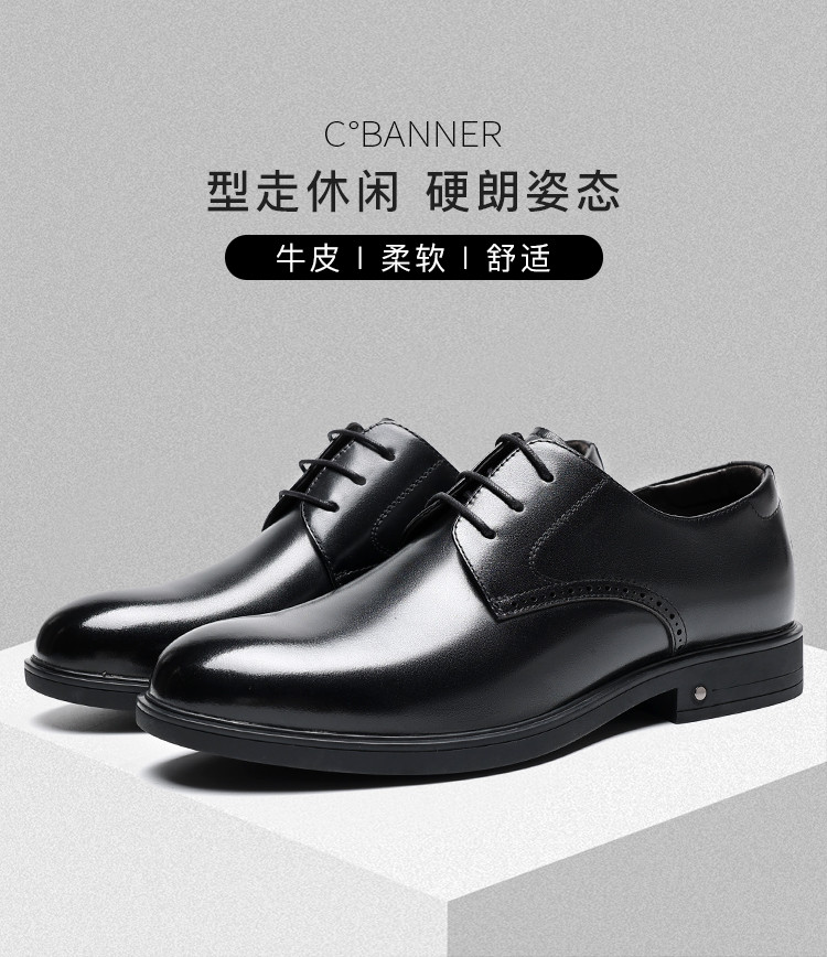千百度 【头层牛皮】真皮男士皮鞋商务正装男鞋婚鞋职场皮鞋男德比鞋皮鞋