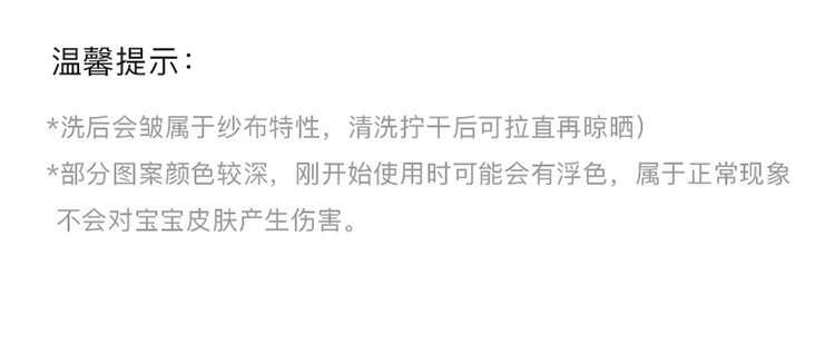 被图案种草的,收到果然没失望!花色/图案可可爱爱,洗了不掉色不掉絮。给宝宝戴上特别上镜,随手一拍都是萌娃大片。而且不是那种薄薄的一层,有一定厚度,既能当口水巾又能当拍照小配饰,满意!