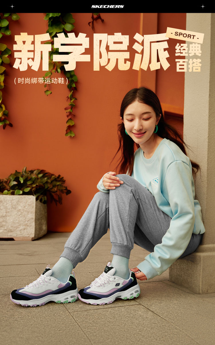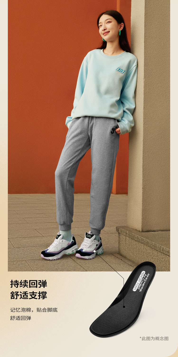 斯凯奇 【D'LITES熊猫鞋】女鞋学院女老爹鞋女运动休闲鞋缓震秋冬