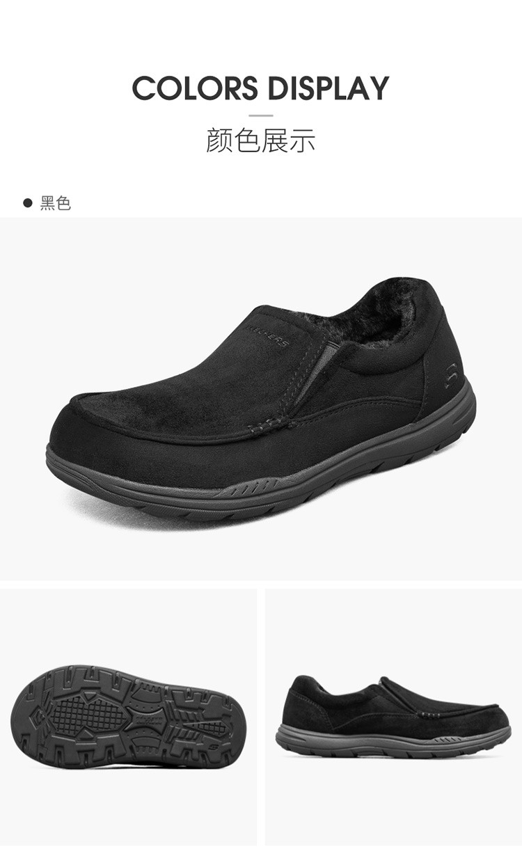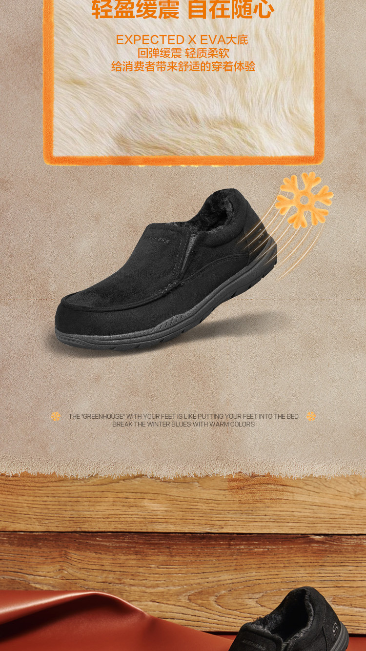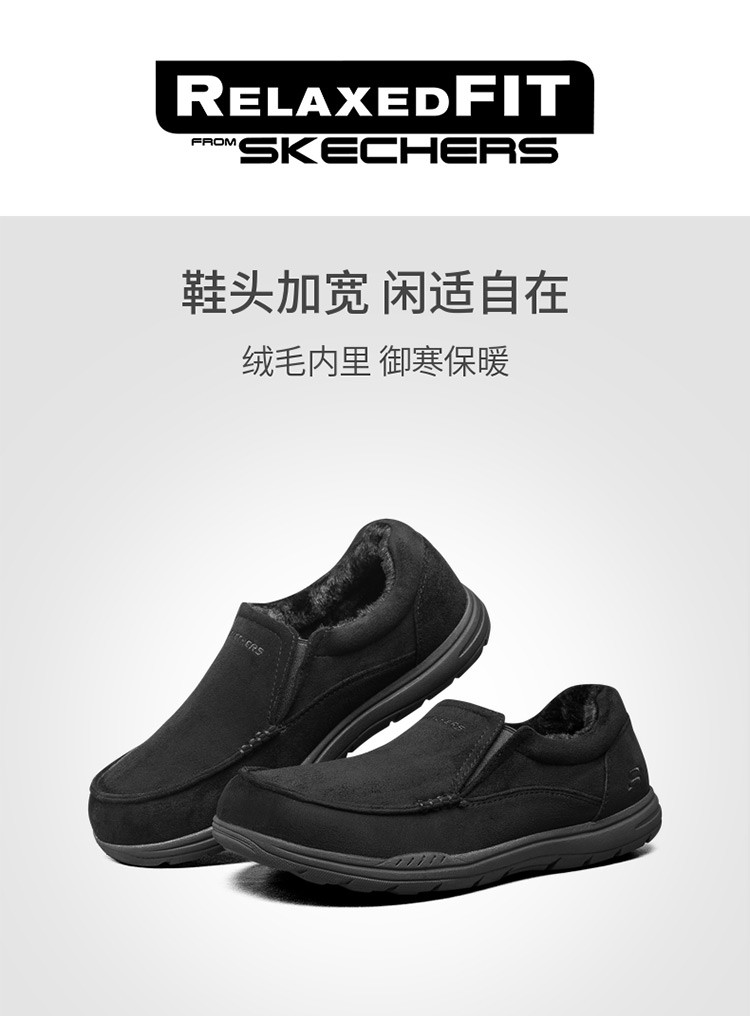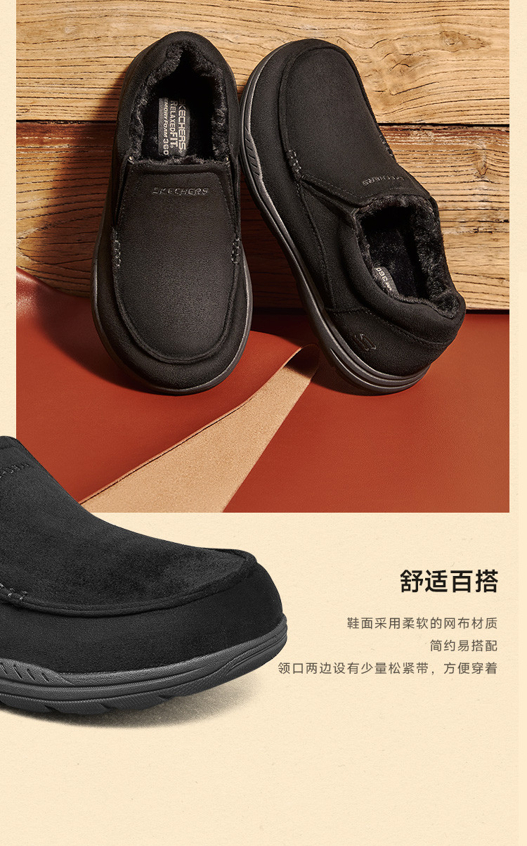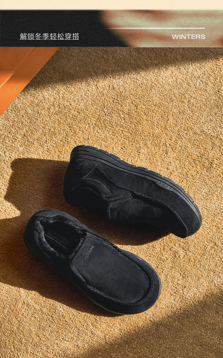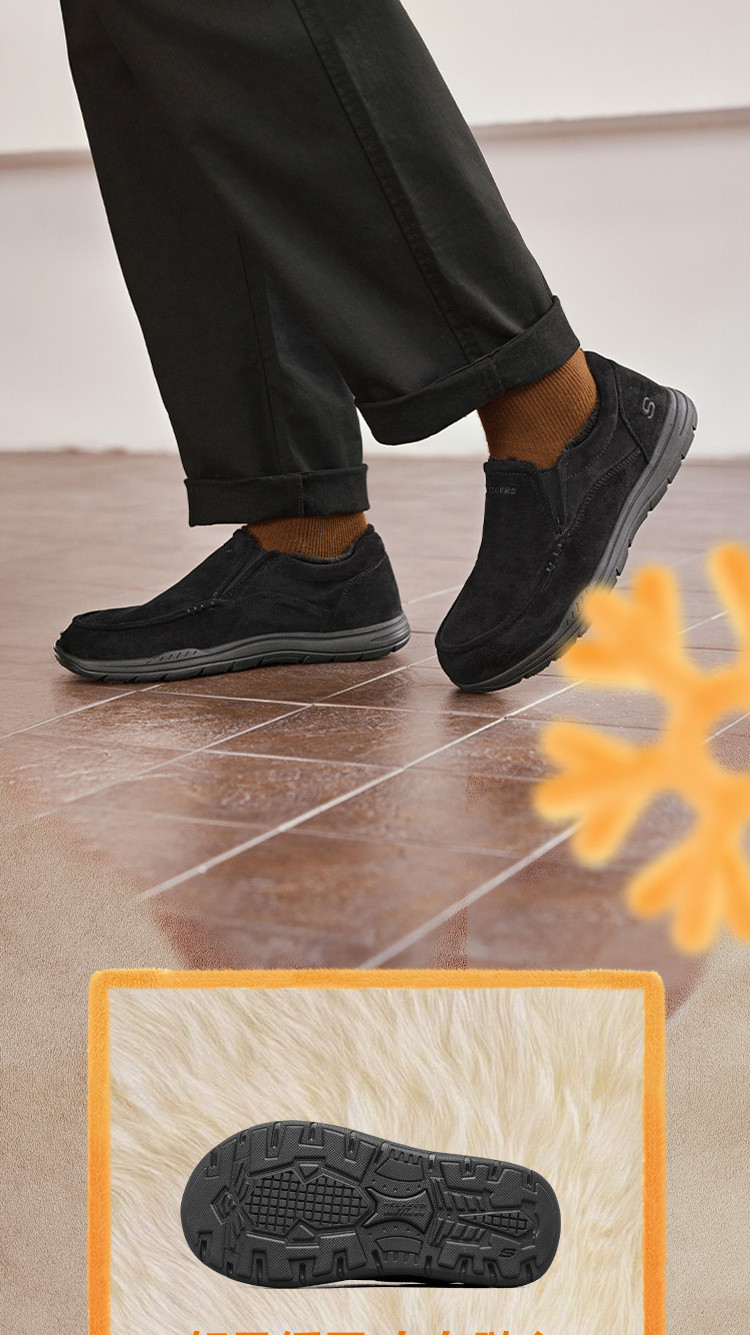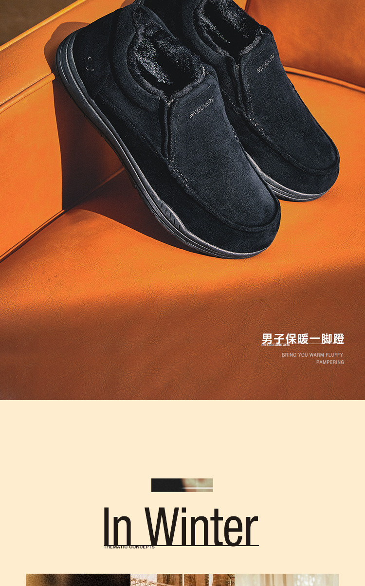 斯凯奇 【御寒保暖】男鞋户外加绒保暖一脚蹬男士休闲鞋轻便爸爸鞋冬季