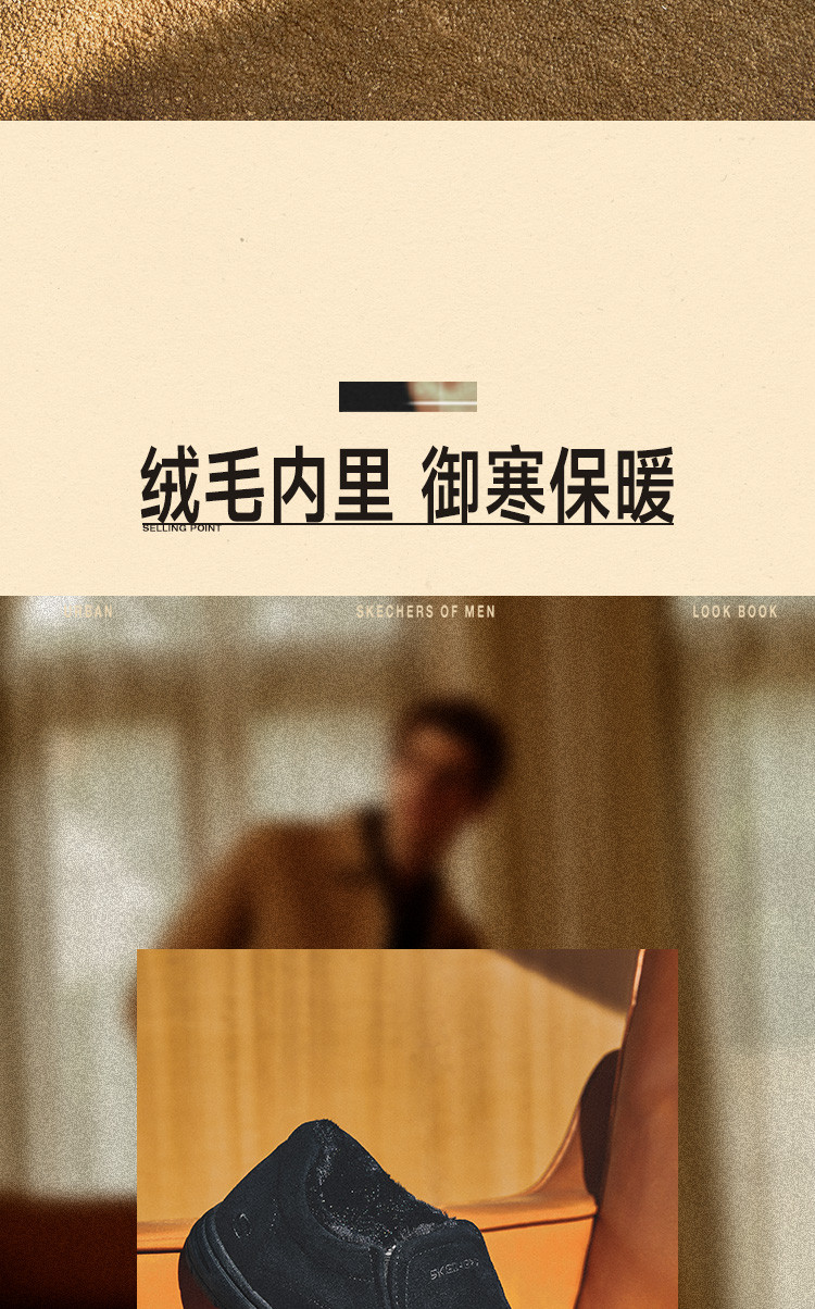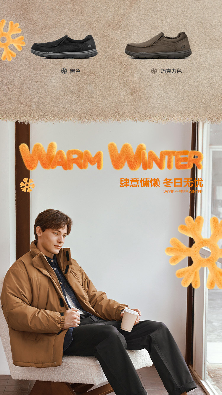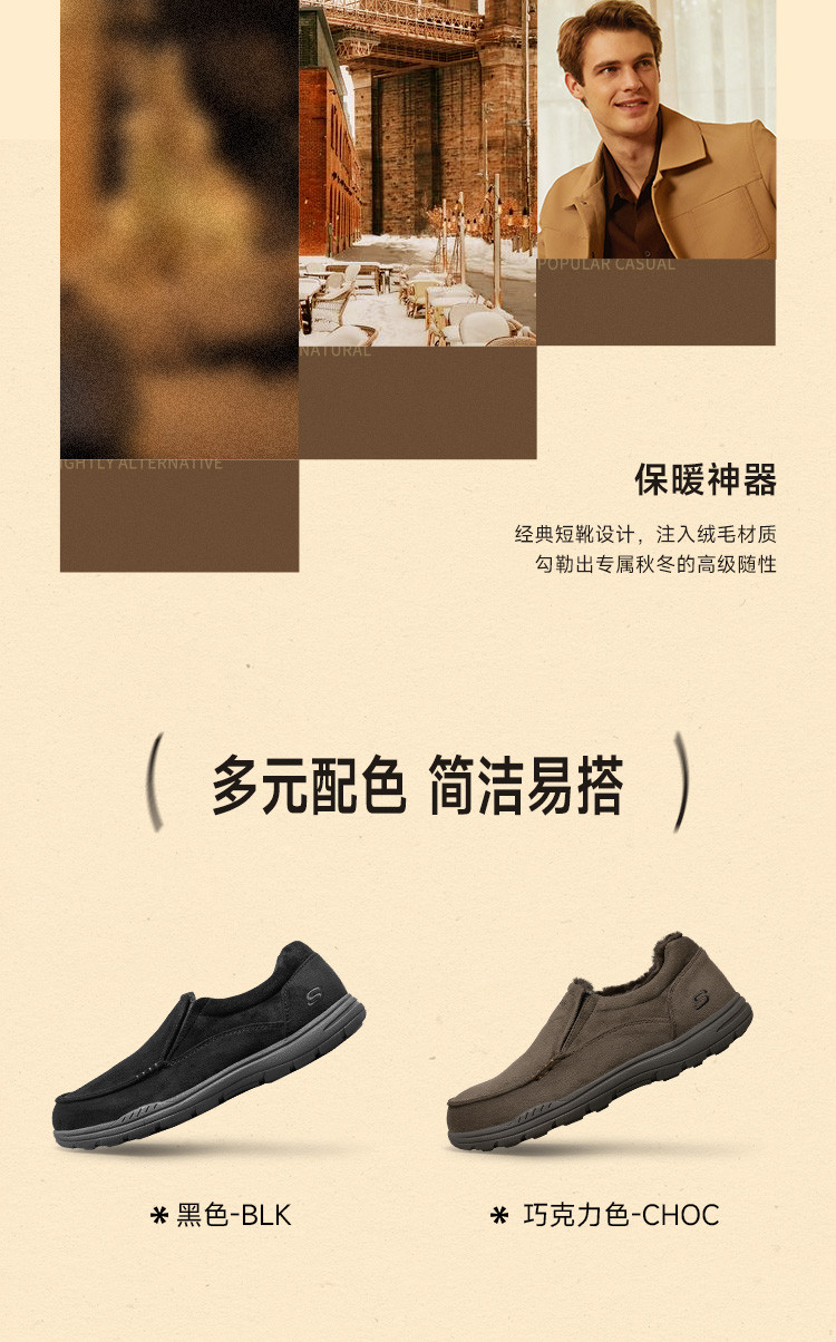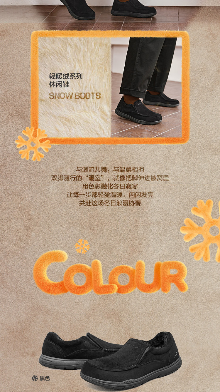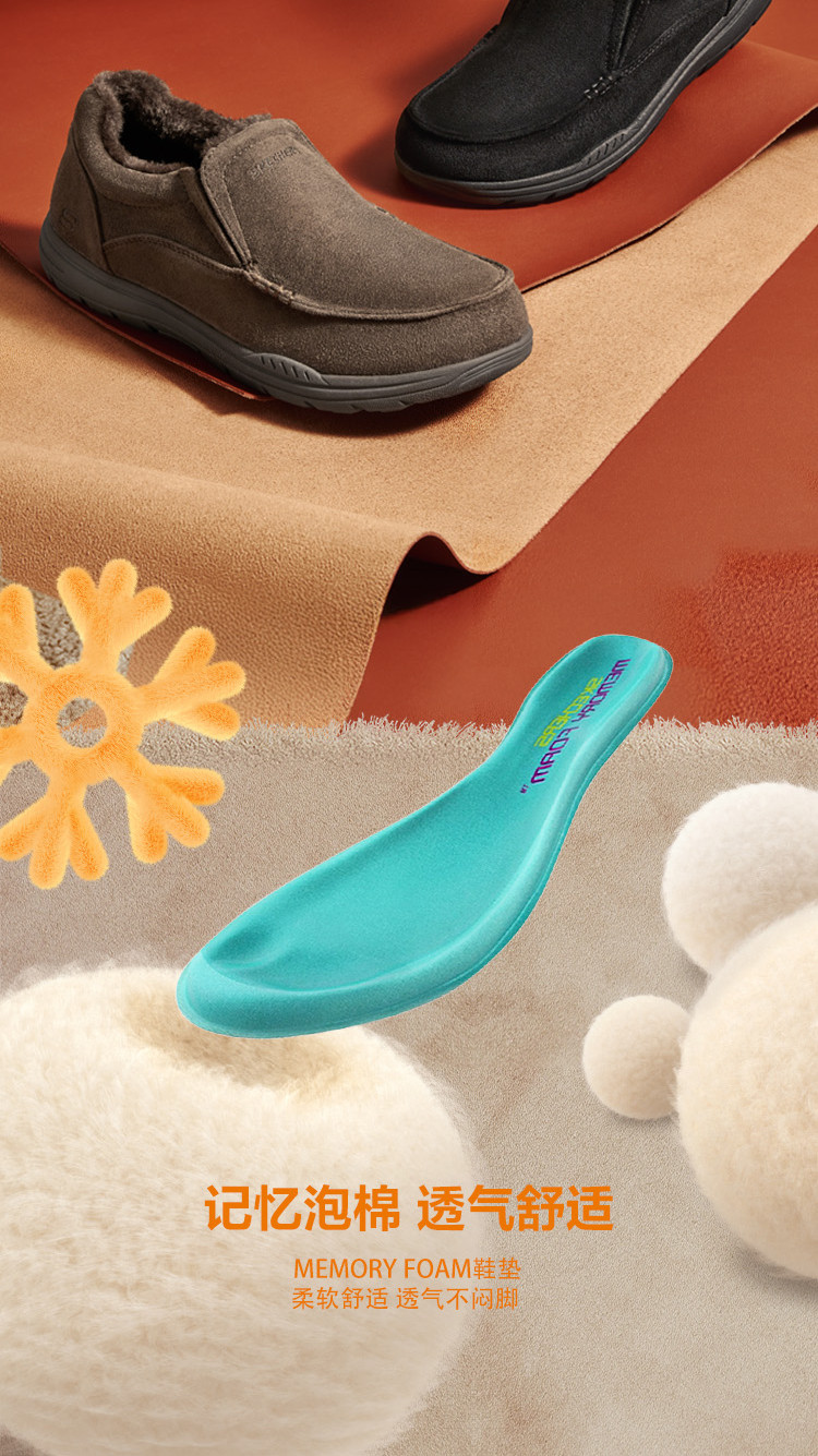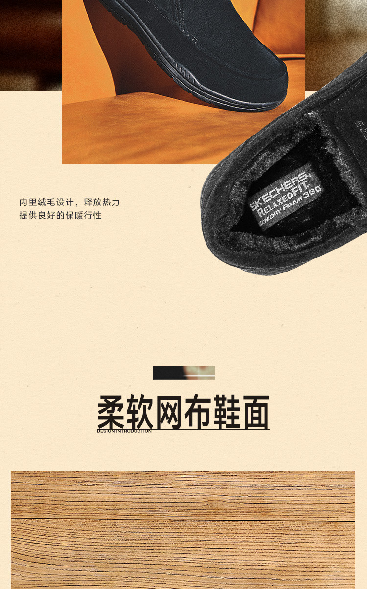 斯凯奇 【御寒保暖】男鞋户外加绒保暖一脚蹬男士休闲鞋轻便爸爸鞋冬季