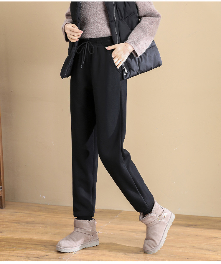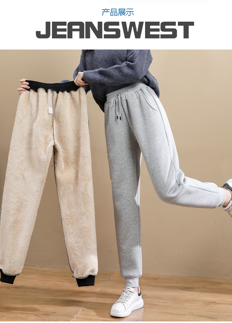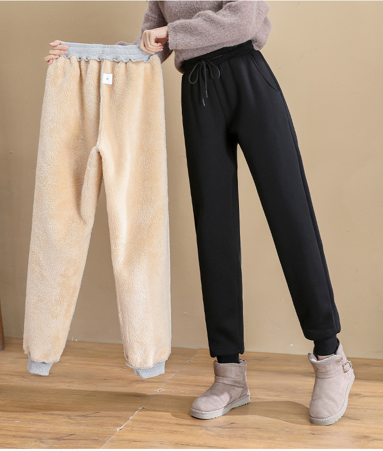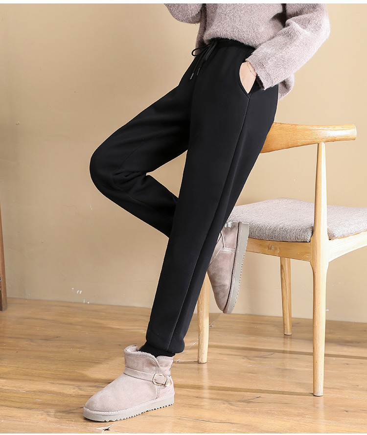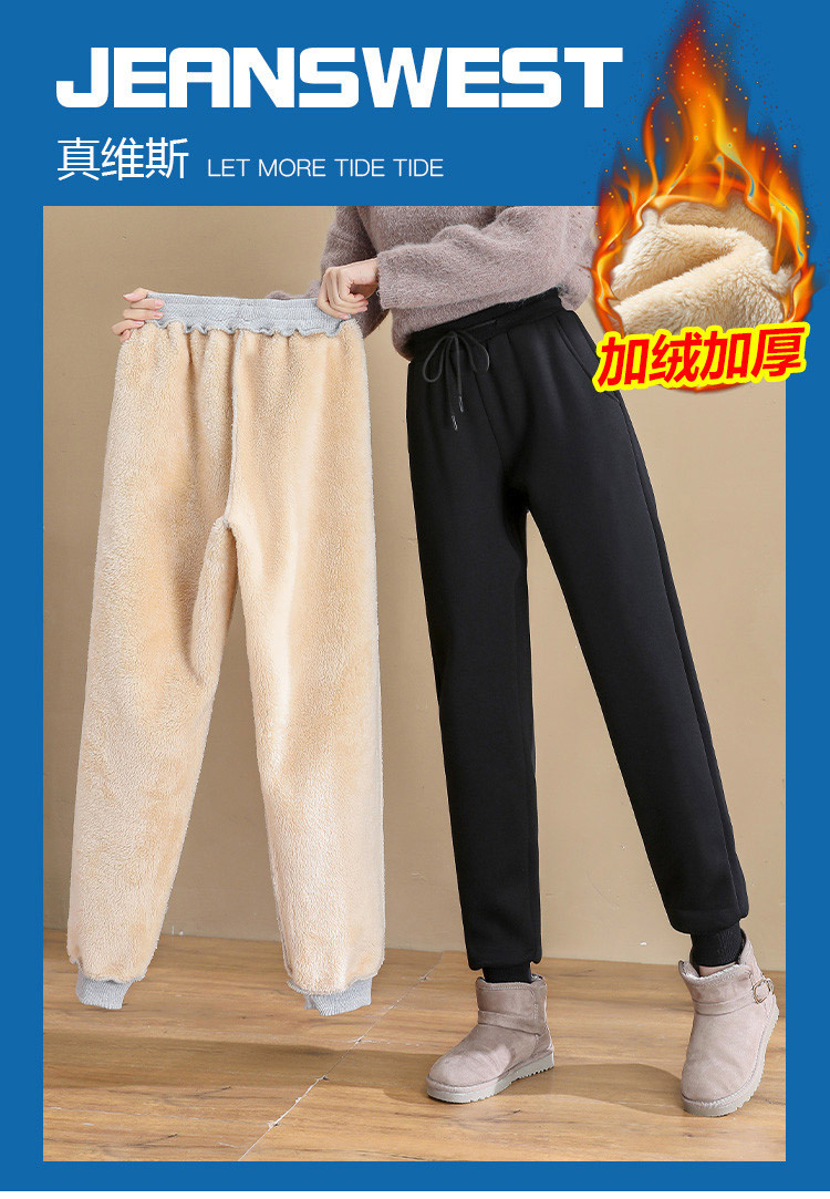 真维斯 加绒裤子女式仿羊羔绒保暖休闲运动裤卫裤女士哈伦裤舒适长裤
