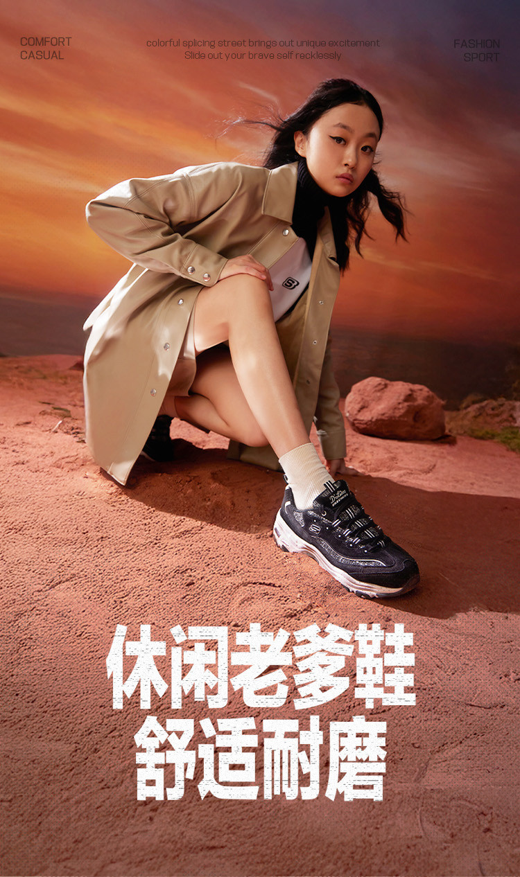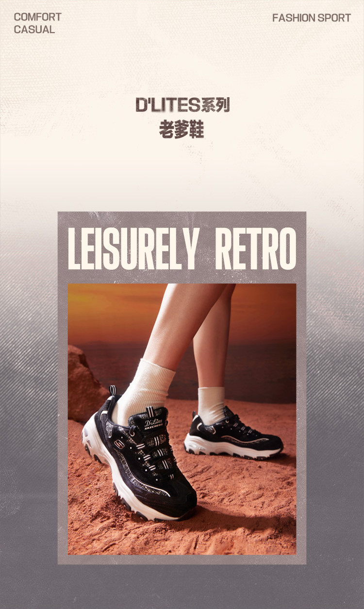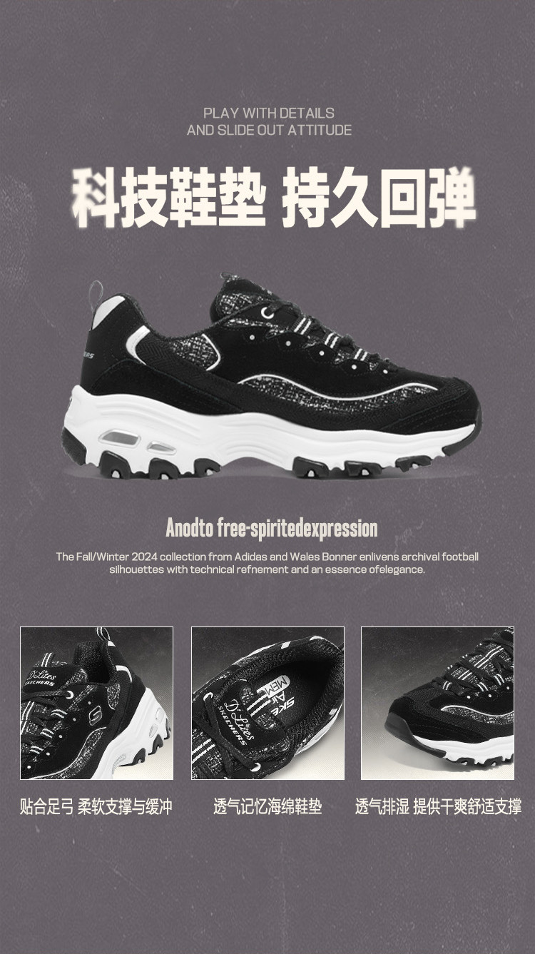 斯凯奇 【经典熊猫鞋】女鞋轻质休闲鞋缓震休闲运动鞋女老爹鞋春夏季