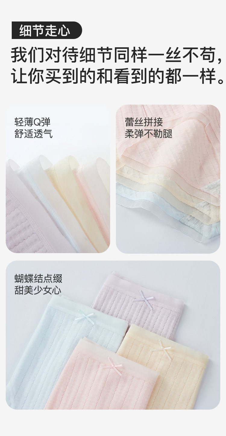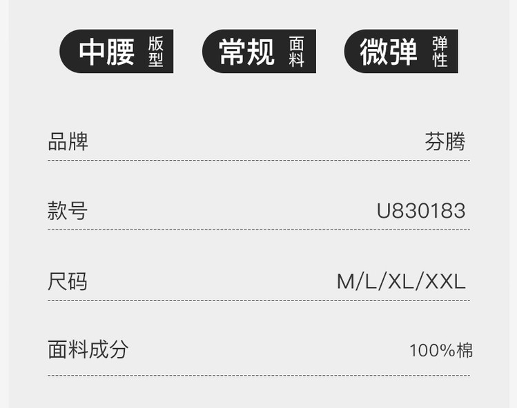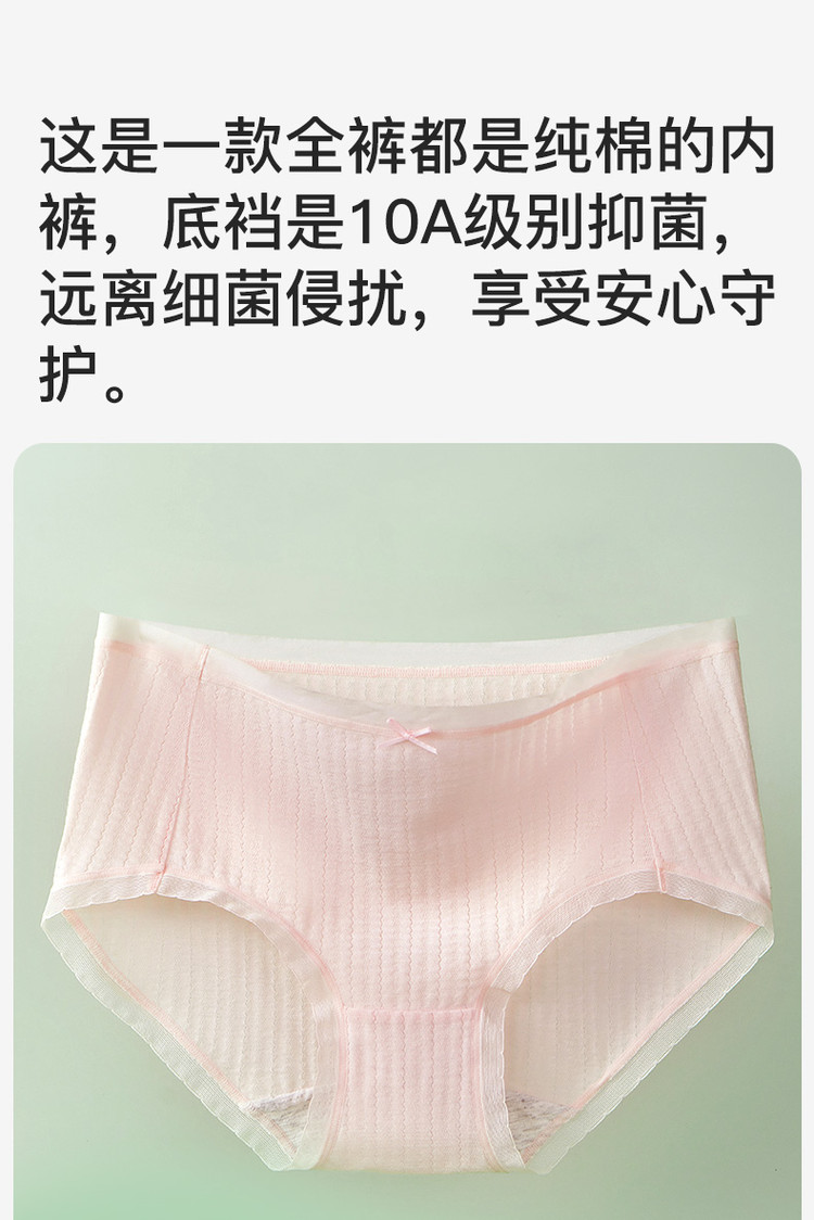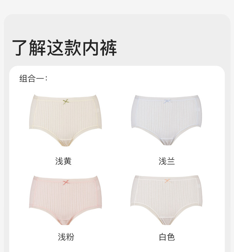 芬腾 【10A级抑菌裆】4条装舒适性感中腰内裤女纯棉100%棉内裤