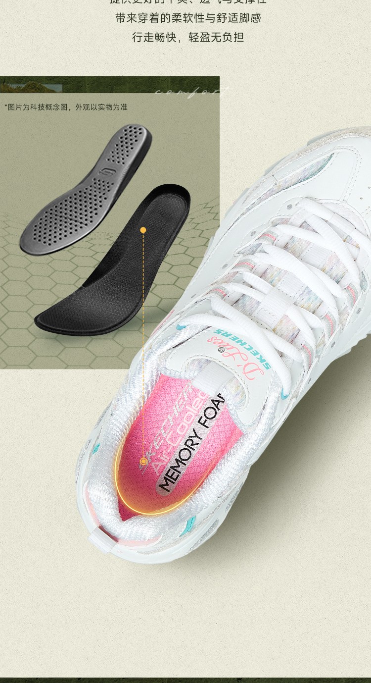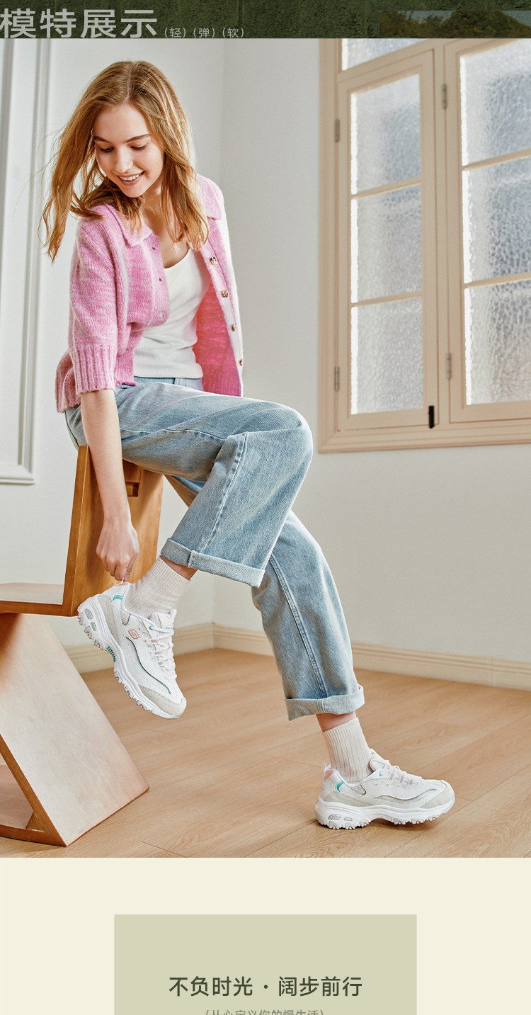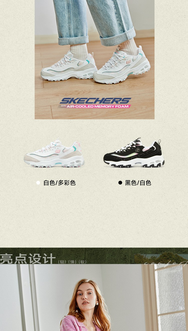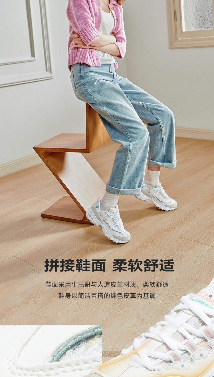 斯凯奇 【甜美拼接】女鞋轻质老爹鞋休闲鞋休闲运动鞋小白鞋女增高春夏季