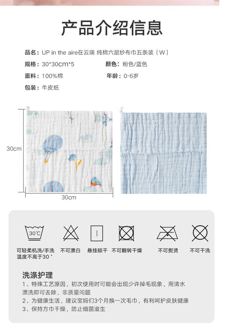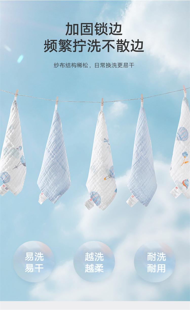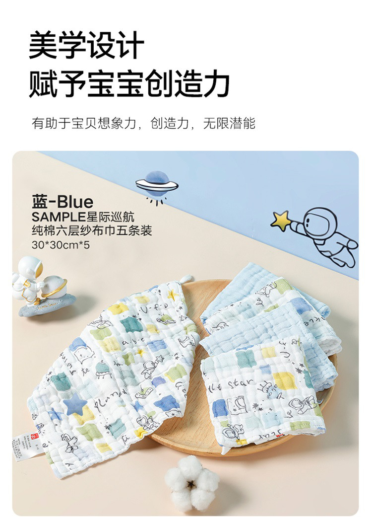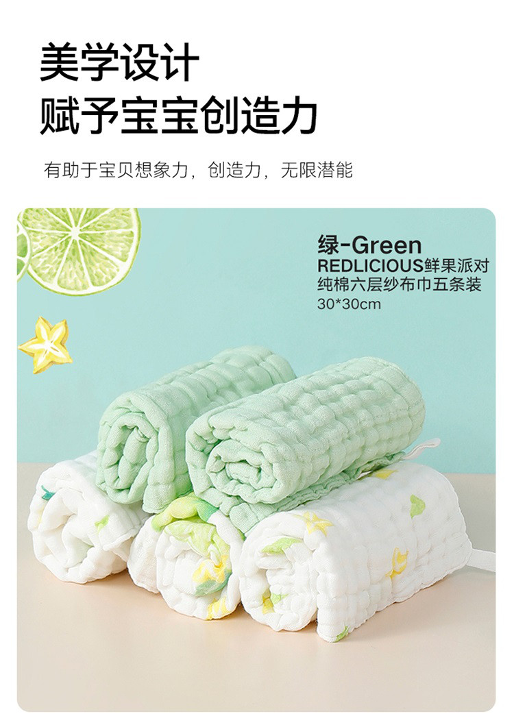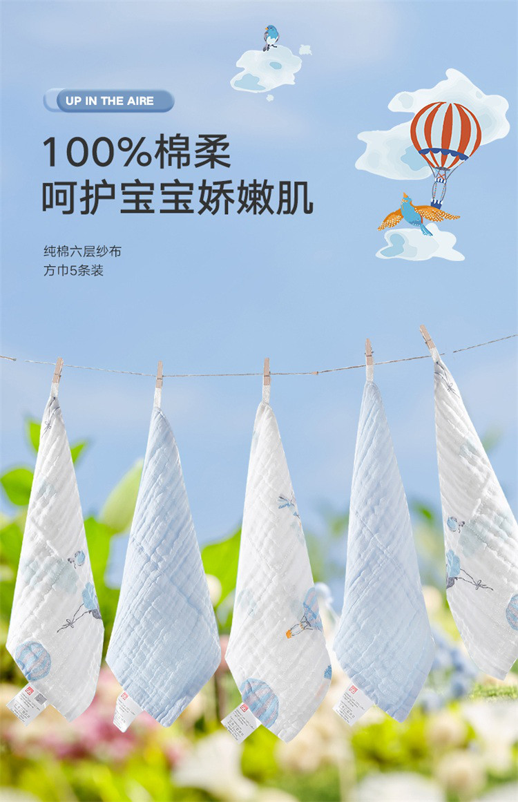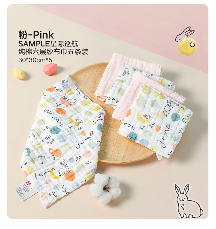好孩子 【5条/8条】婴儿纯棉六层纱布口水巾宝宝毛巾洗脸巾多用小方巾