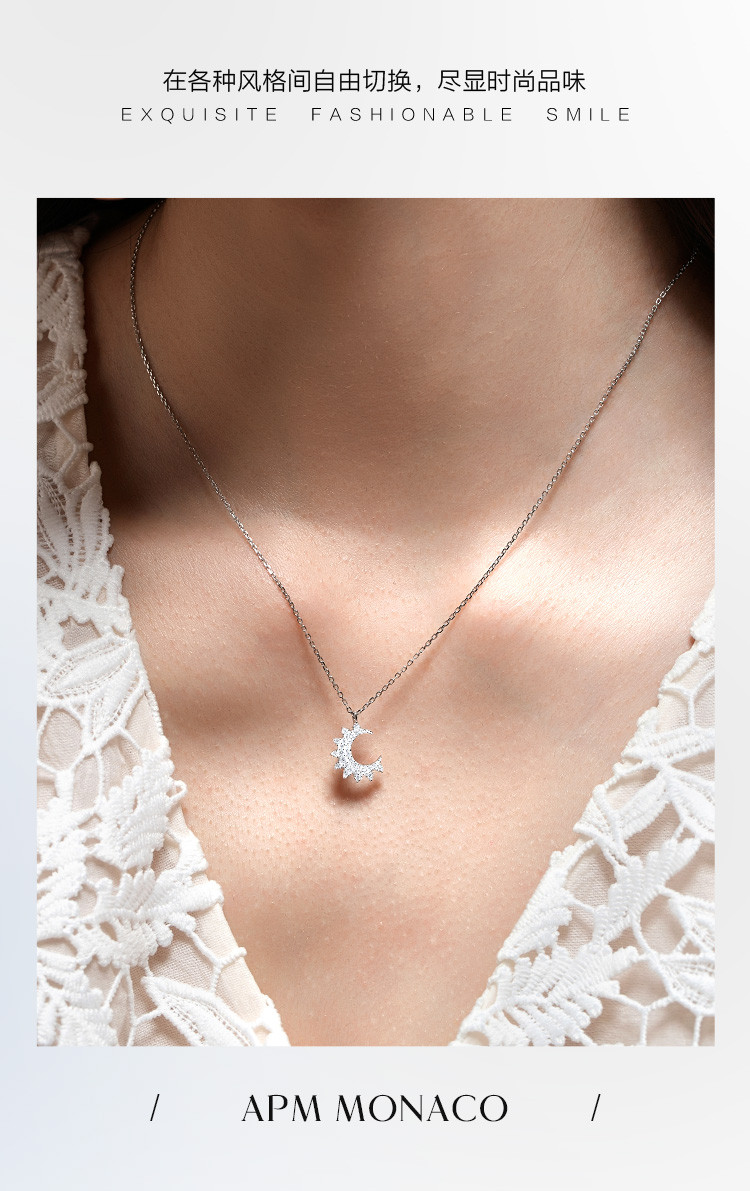 apm MONACO 小月亮轻奢时尚925银项链毛衣链锁骨链送女友AC5522OX
