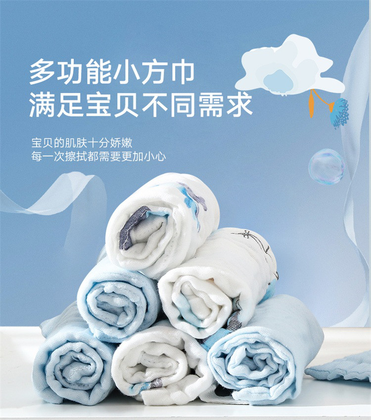 好孩子 【5条/8条】婴儿纯棉六层纱布口水巾宝宝毛巾洗脸巾多用小方巾