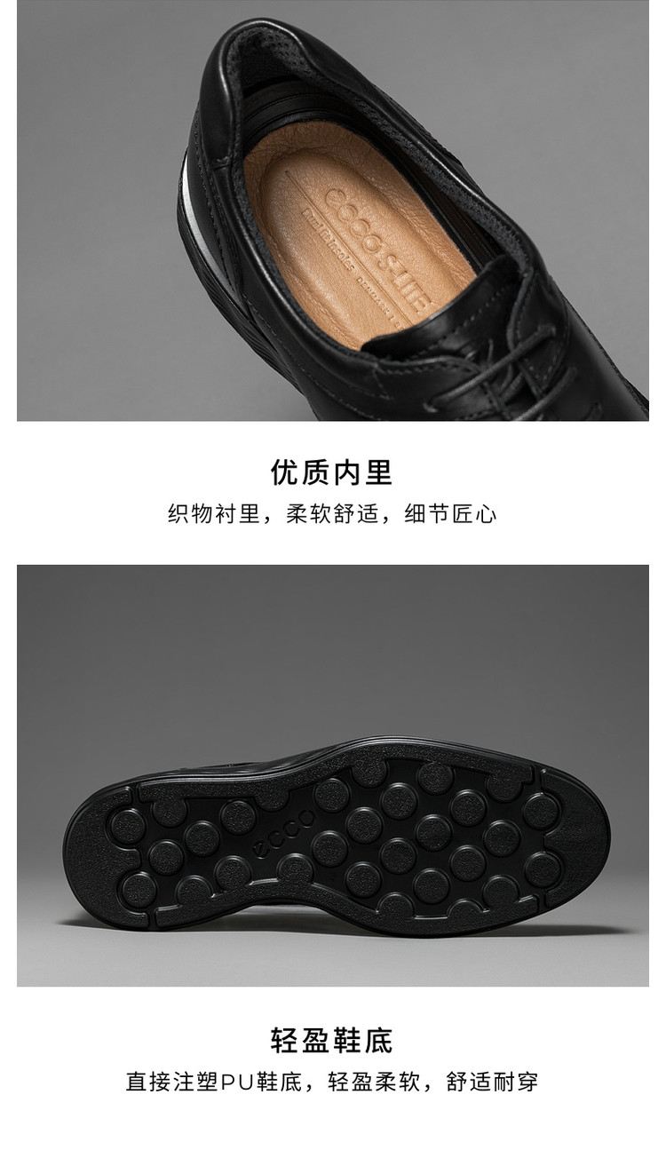 ECCO 【入会满减100】男士商务皮鞋 舒适通勤德比鞋 轻巧混合520324