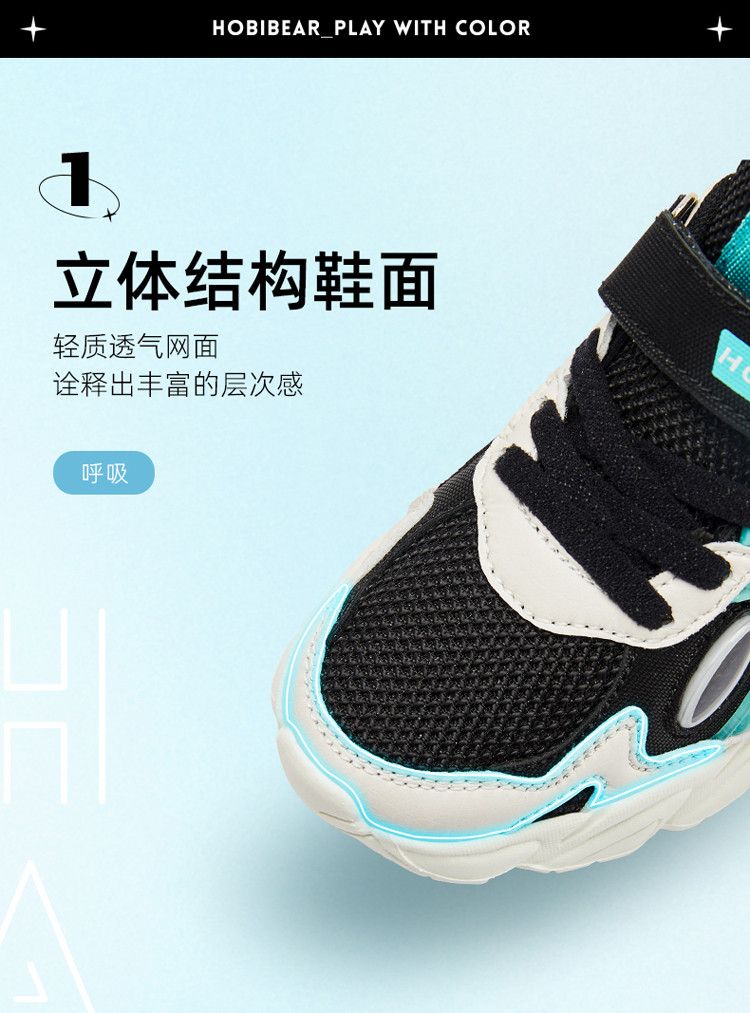 哈比熊 童鞋男童运动鞋春秋季中大童网面鞋韩版儿童鞋子透气休闲跑步鞋