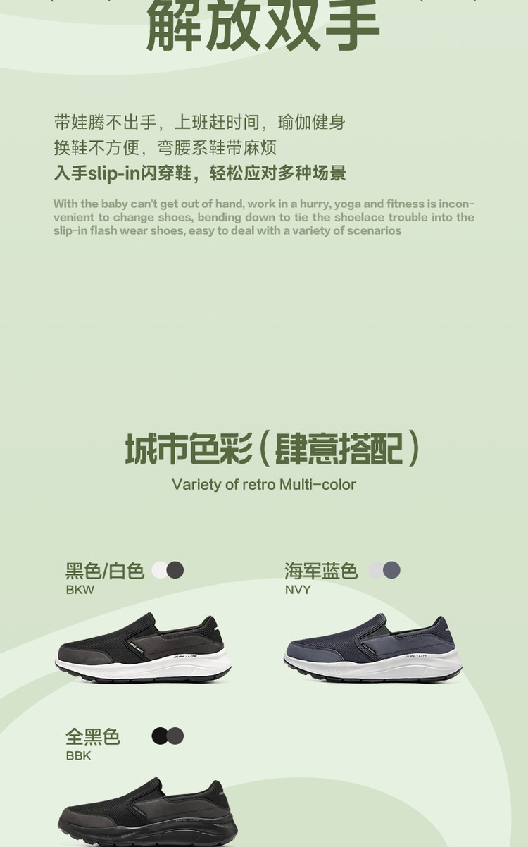 给老公买的一脚蹬,他非常的喜欢斯凯奇的鞋,穿着很舒适,而且很轻便夏天,穿着非常不错哟,不累脚。一次给家人入了好几双斯凯奇的鞋。