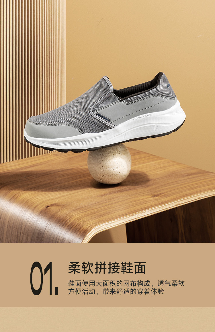 斯凯奇 【宽鞋头】男鞋一脚蹬男休闲鞋健步鞋复古休闲鞋男士缓震春夏季