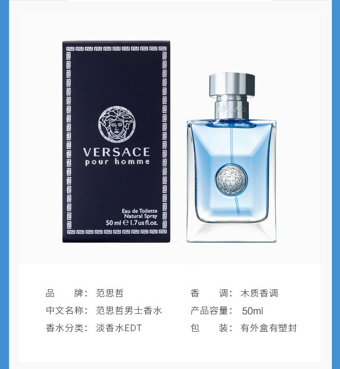 范思哲 经典同名男士淡香水 50ml 清新优雅 自然清新木质男香
