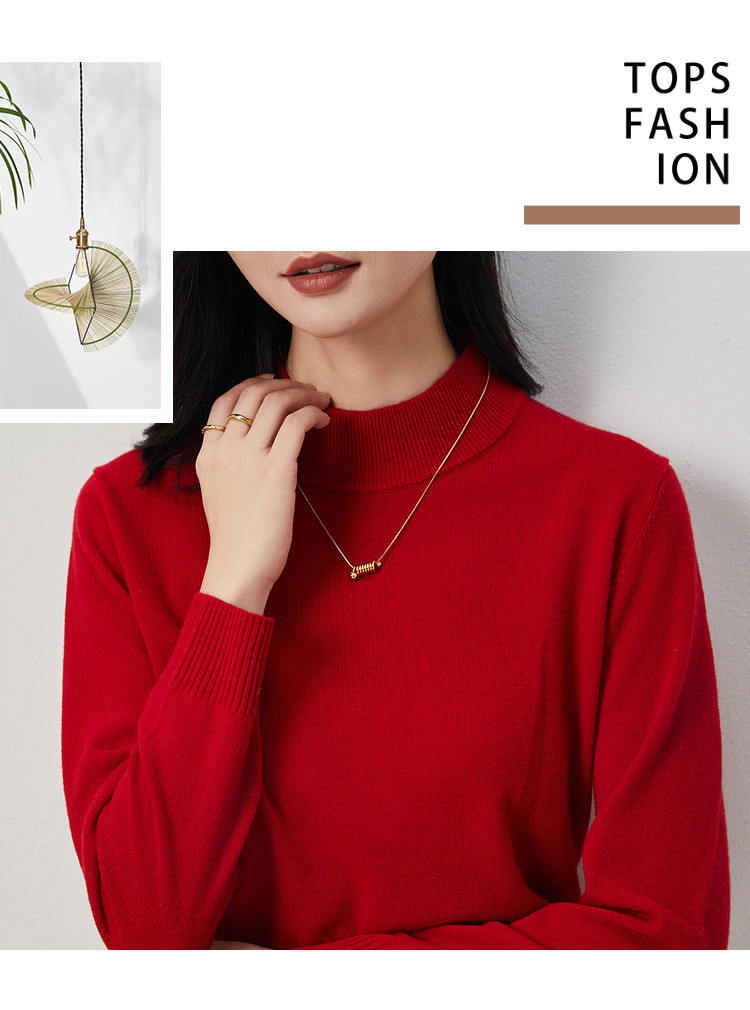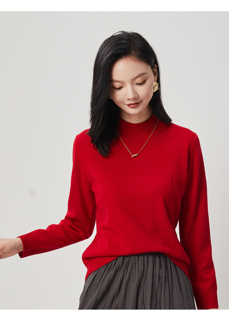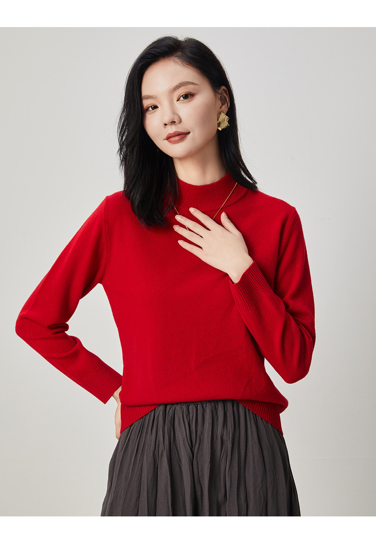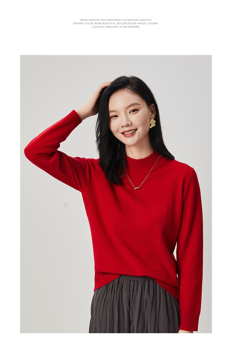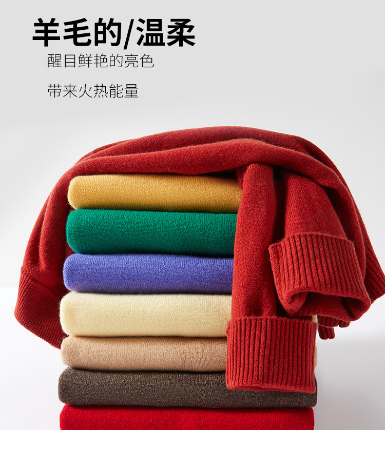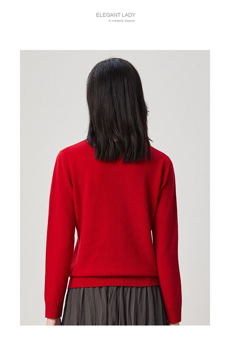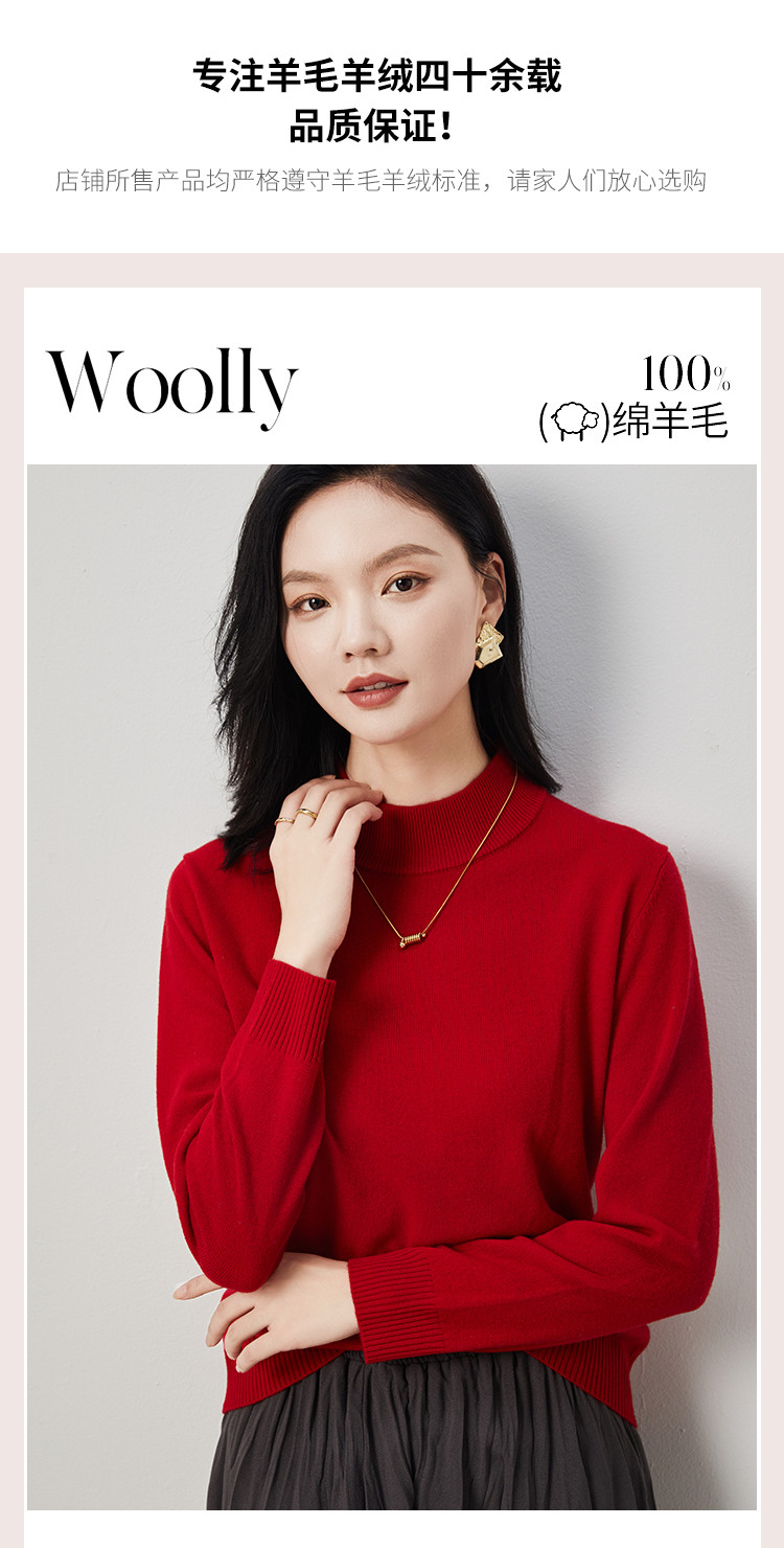 金菊 【纯羊毛】镇店头部款新年红毛衣日常百搭保暖柔软纯色打底羊毛衫