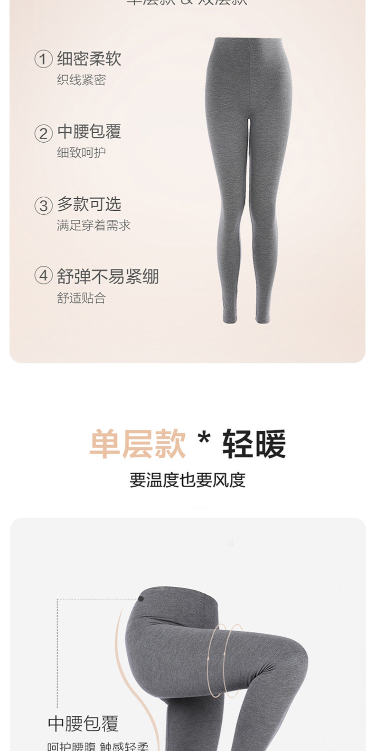 爱慕 爆款热卖【细腻保暖 轻暖不紧绷】单层双层秋裤保暖中高腰打底裤