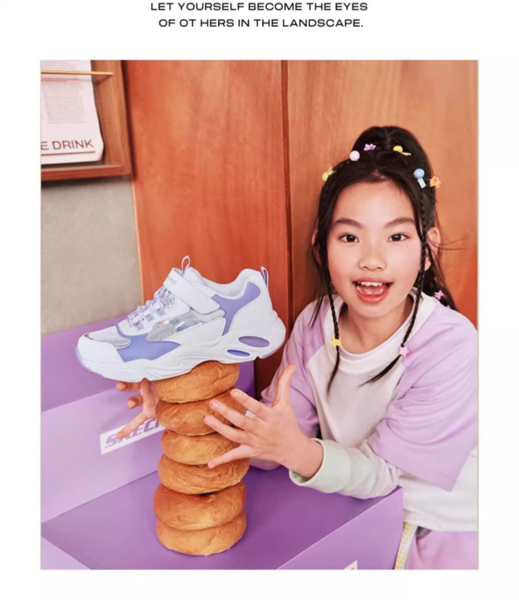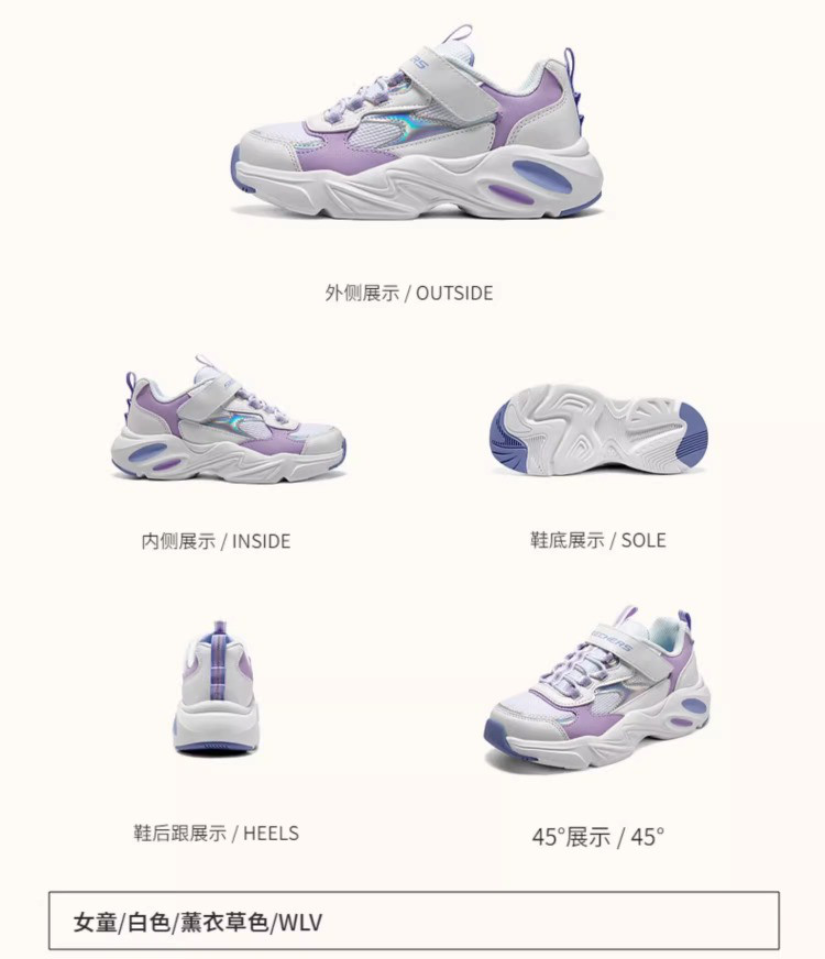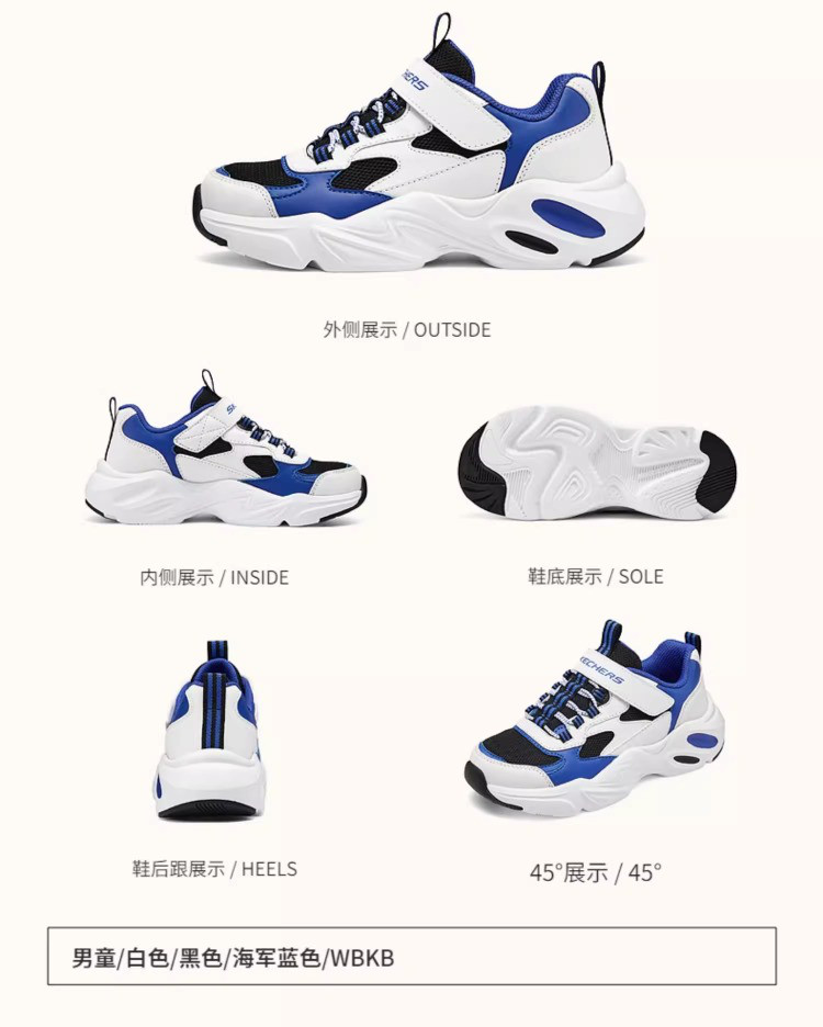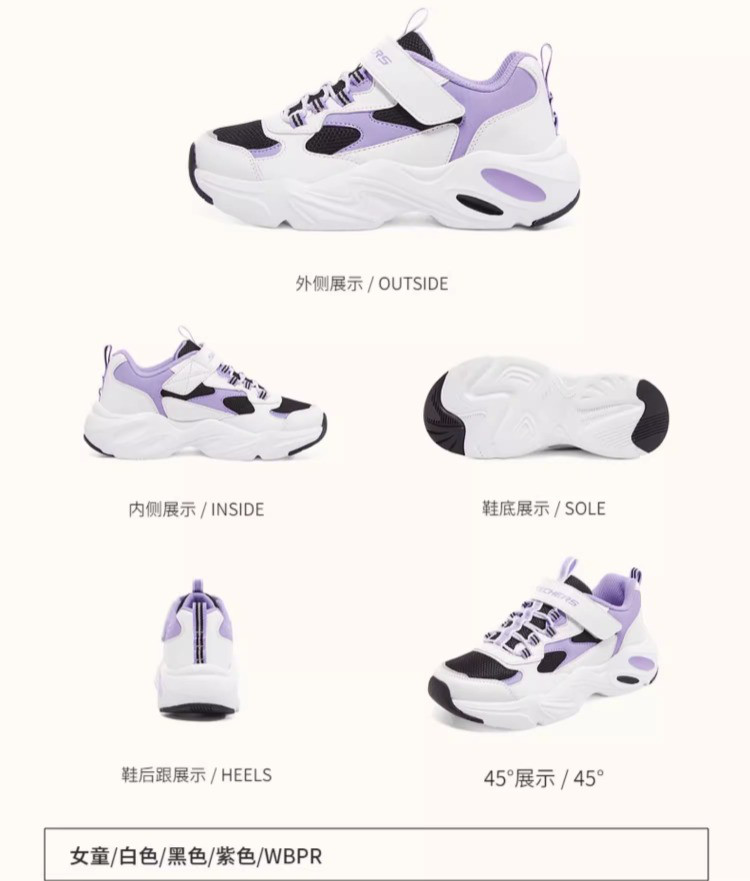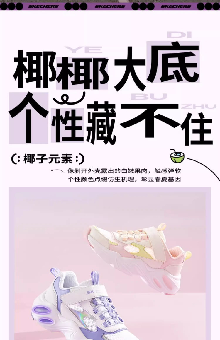 斯凯奇 【熊猫鞋】女中大童|秋冬魔术贴儿童板鞋老爹鞋舒适休闲运动
