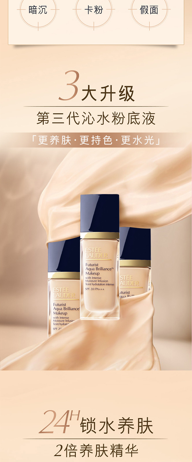 雅诗兰黛 新版第三代沁水粉底液干皮救星遮瑕 1C0冷象牙白(酷瓷白)