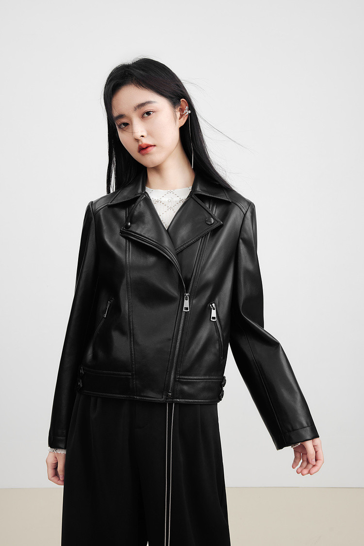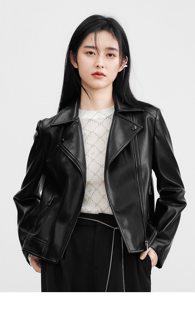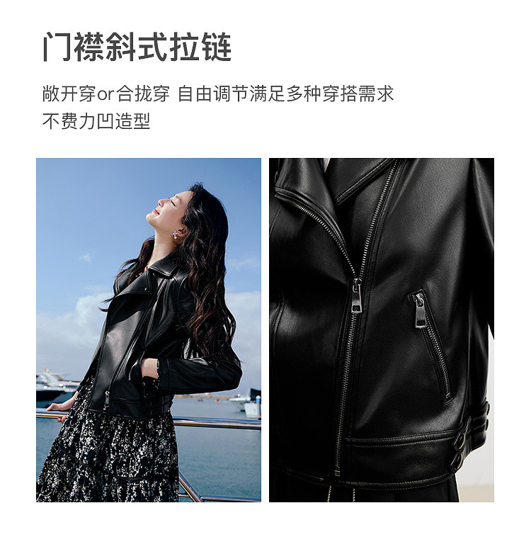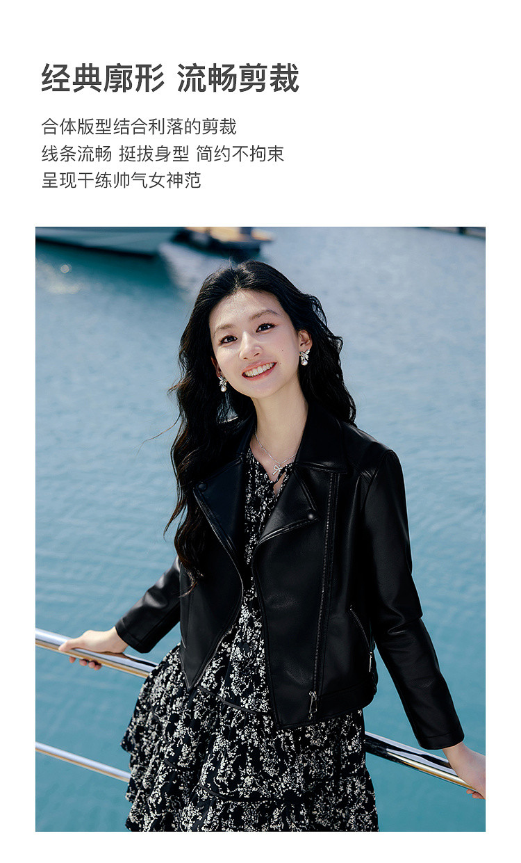 秋水伊人 【沈月同款】长期主义机车仿皮衣设计感小个子外套时尚百搭上衣女