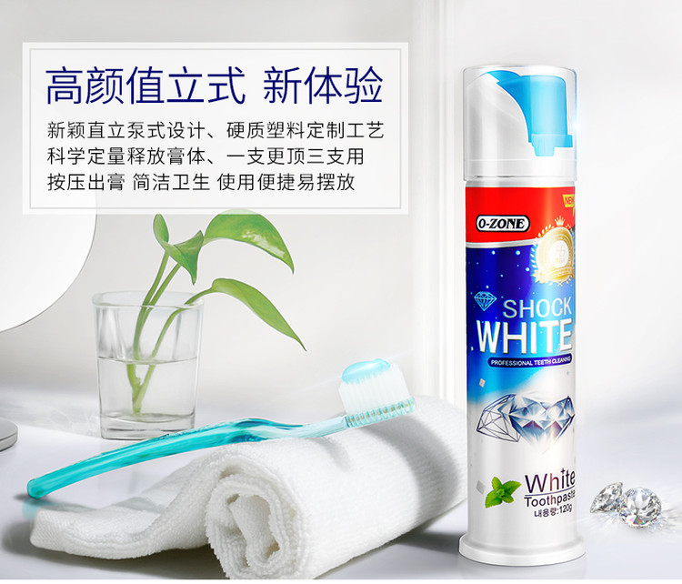 O-ZONE 【必囤超值家庭装】成人美白牙膏去黄去渍去牙垢异味清新口气除臭