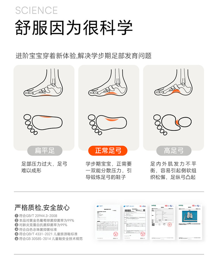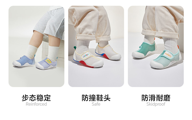 给刚学走路的宝宝入的,选对鞋真的太重要了!鞋头是加宽设计,宝宝的小脚趾能自由舒展,一点不挤脚。鞋底软硬适中,前1/3处能轻松弯折,助力宝宝起步,后跟又有足够支撑,能稳住脚型。防滑纹路很清晰,宝宝在家木地板上跑也不会打滑,穿着它走路都稳当了不少,老母亲太欣慰了!