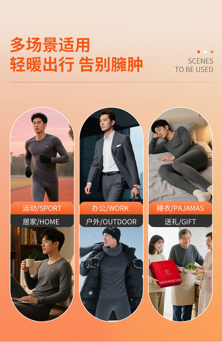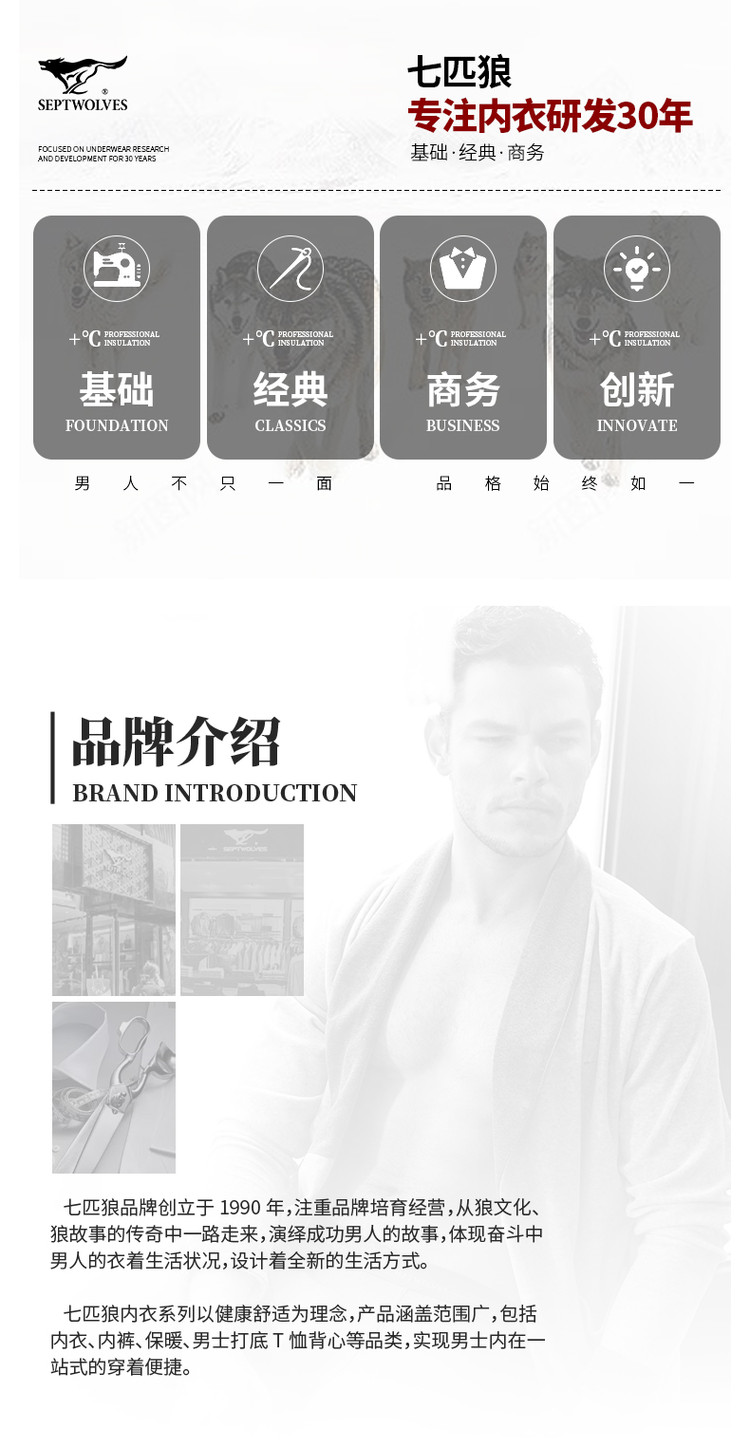 七匹狼 【100%棉】秋冬全身抑菌秋衣秋裤纯棉毛衫男士保暖内衣套装男