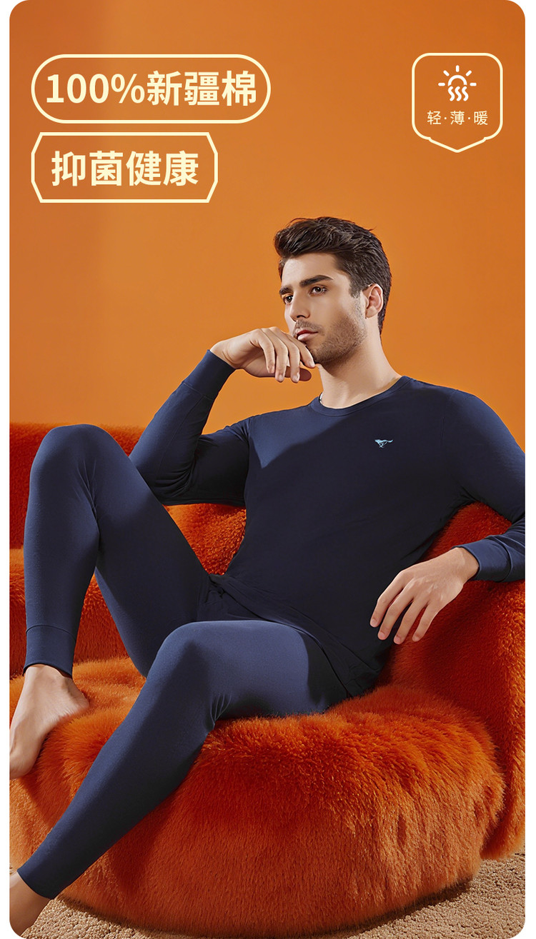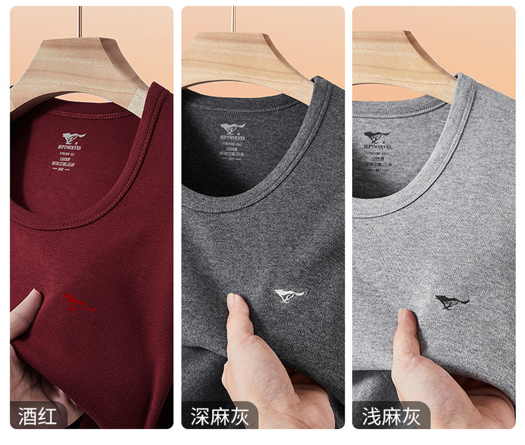 七匹狼 【100%棉】秋冬全身抑菌秋衣秋裤纯棉毛衫男士保暖内衣套装男