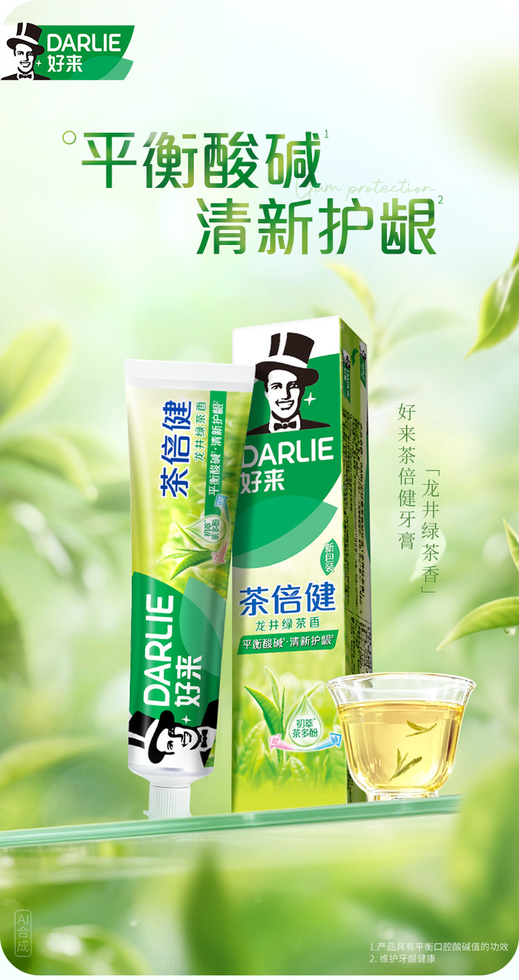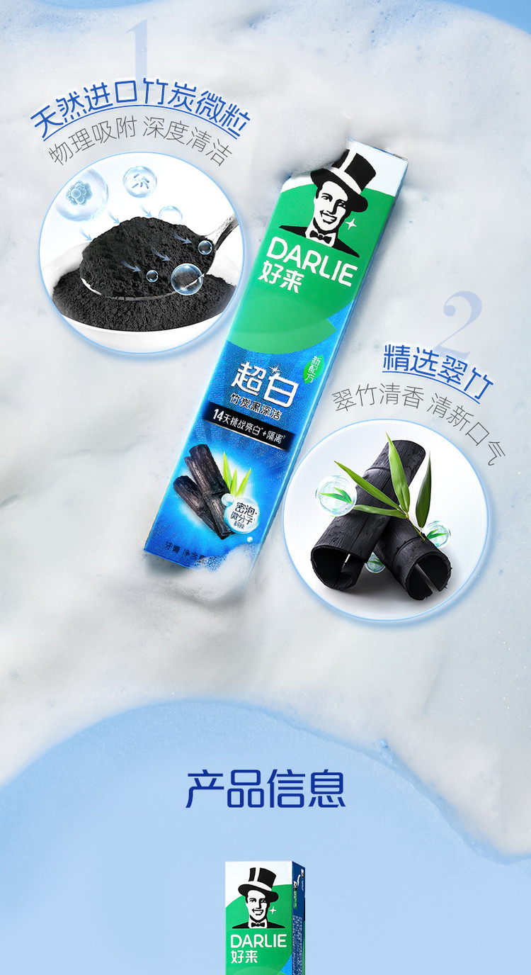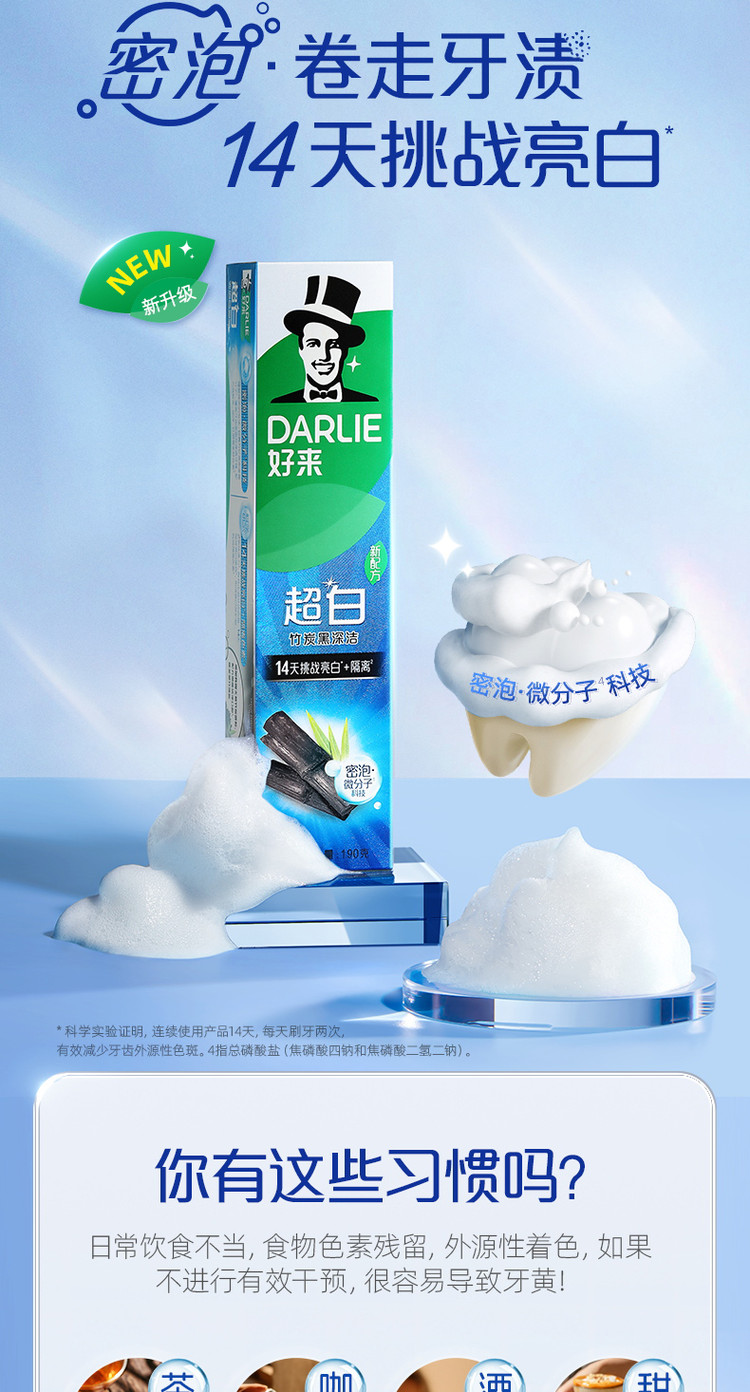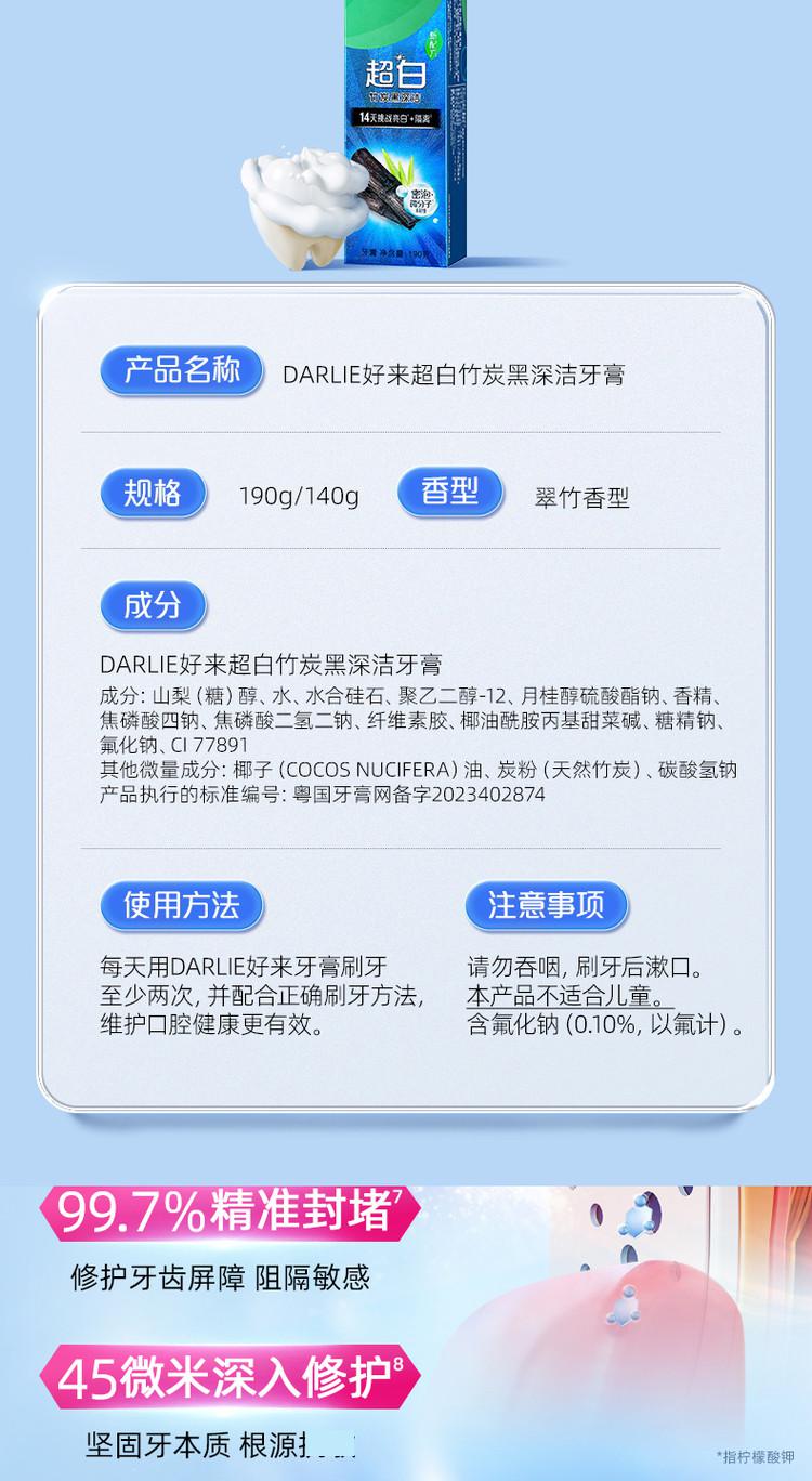 DARLIE 好来双重薄荷茶倍健超白苏打竹炭牙膏成人去黄多效护理