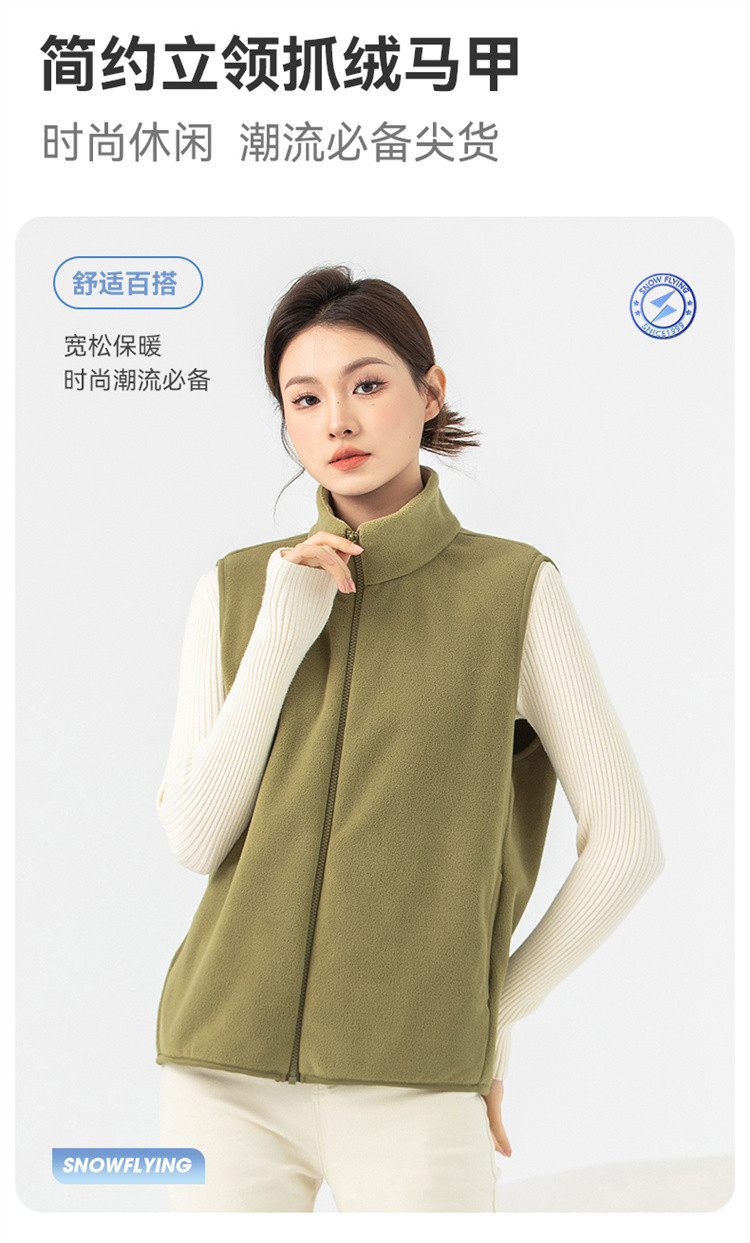 雪中飞 女式简约立领抓绒马甲时尚休闲系列秋冬柔软居家户外马甲