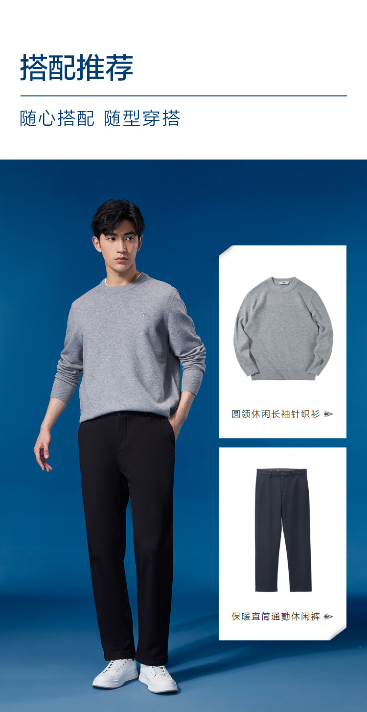 海澜之家 【加绒加厚】冬季轻商务时尚通勤保暖御寒易打理男士休闲裤