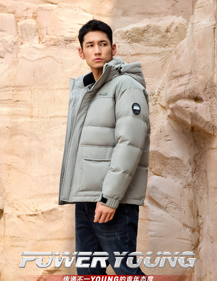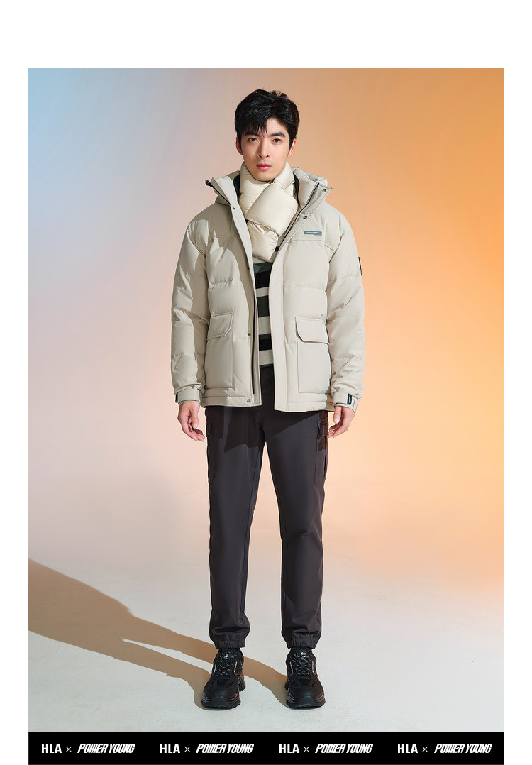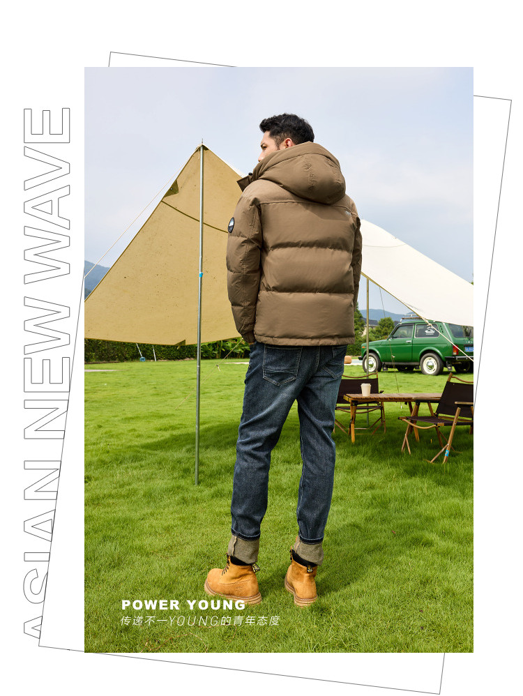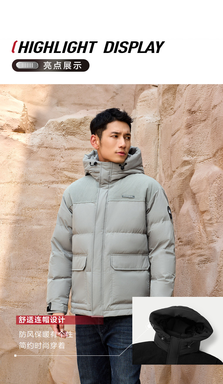 海澜之家 【防钻绒防风】冬季蓬松白鸭绒连帽面包服男士羽绒服
