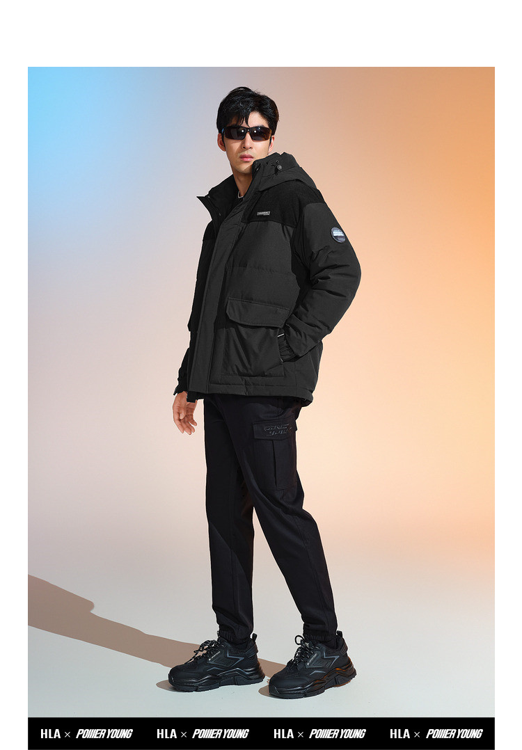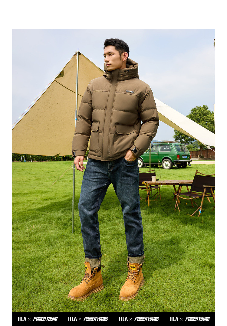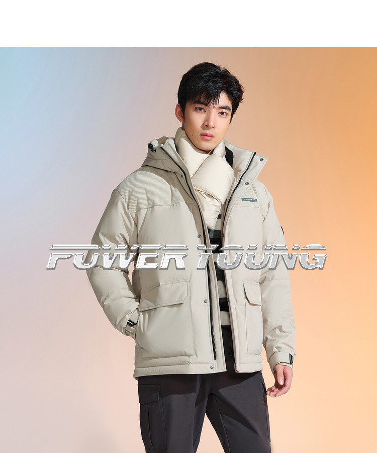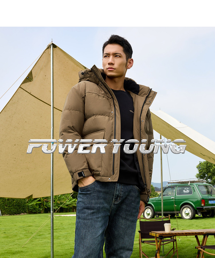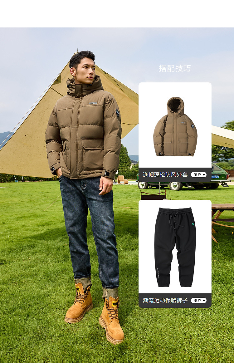 海澜之家 【防钻绒防风】冬季蓬松白鸭绒连帽面包服男士羽绒服