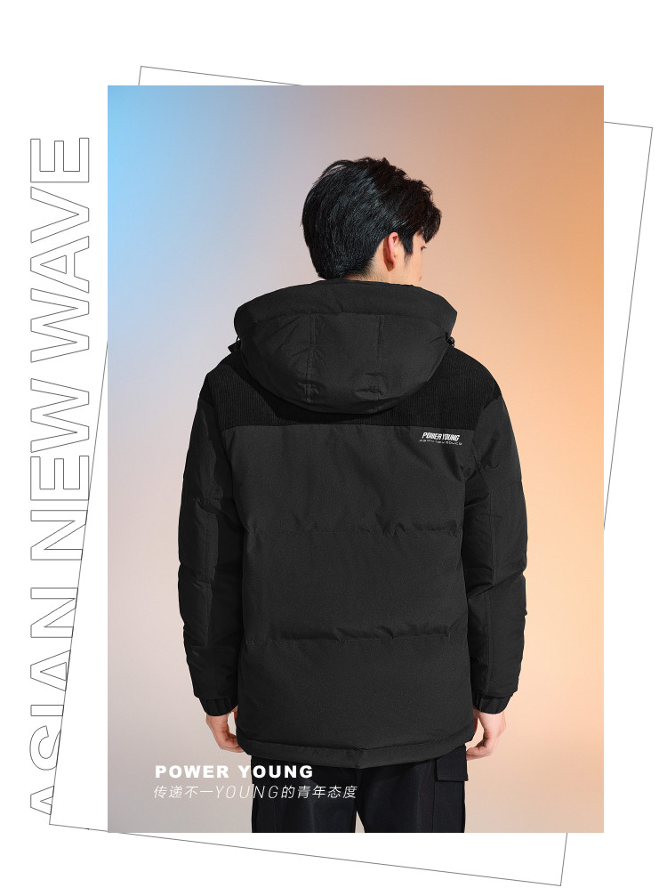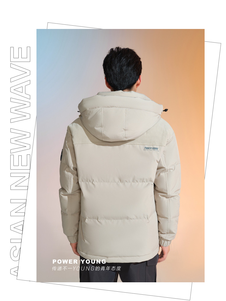 衣服薄厚适中,肩部的条绒设计挺好的,增添了几分活力。冬天的衣服大多是深色系,这个颜色就显得比较亮眼,还显白。180,190斤,这个尺码肥瘦正好。长短属于短款,能盖住半个屁股。