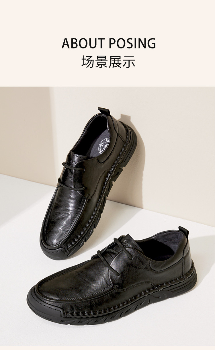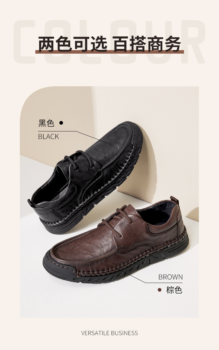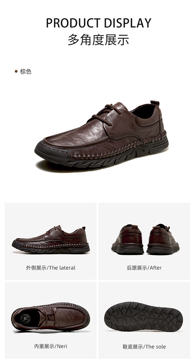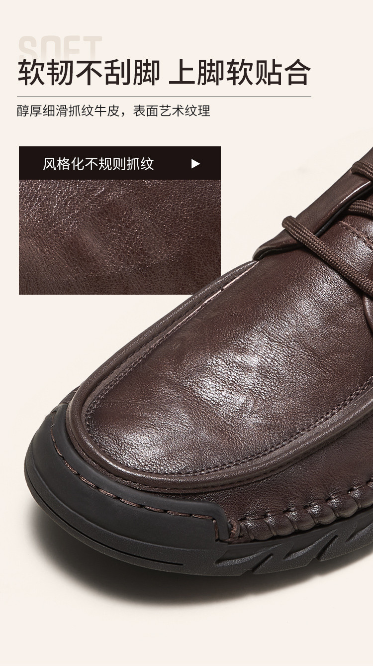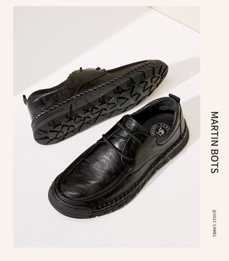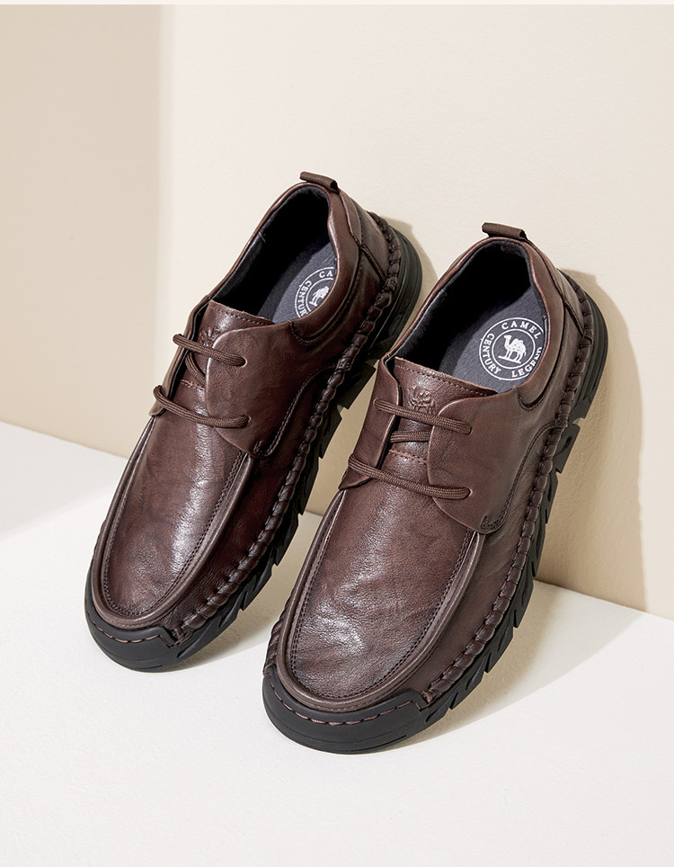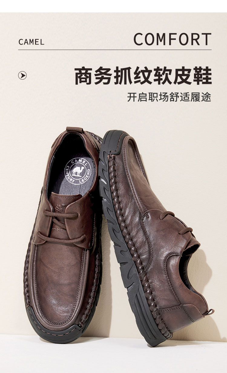 骆驼 【头层牛皮】春夏男牛皮手工鞋户外复古休闲皮鞋软底缝线鞋爸爸鞋