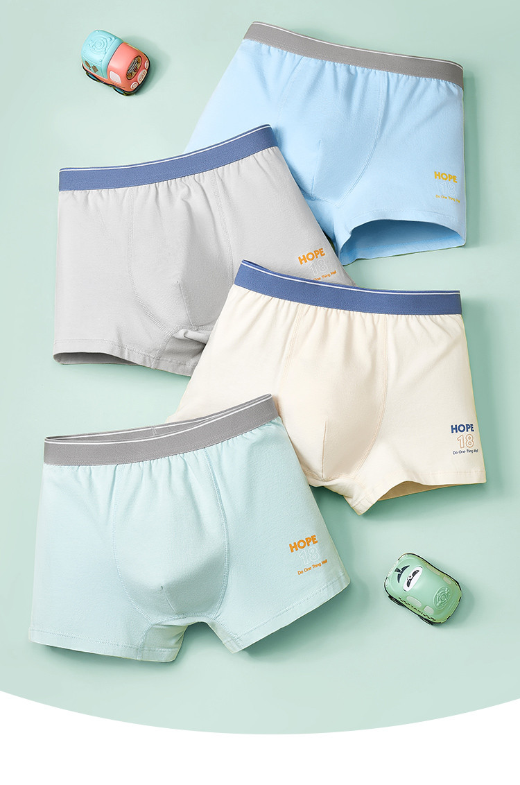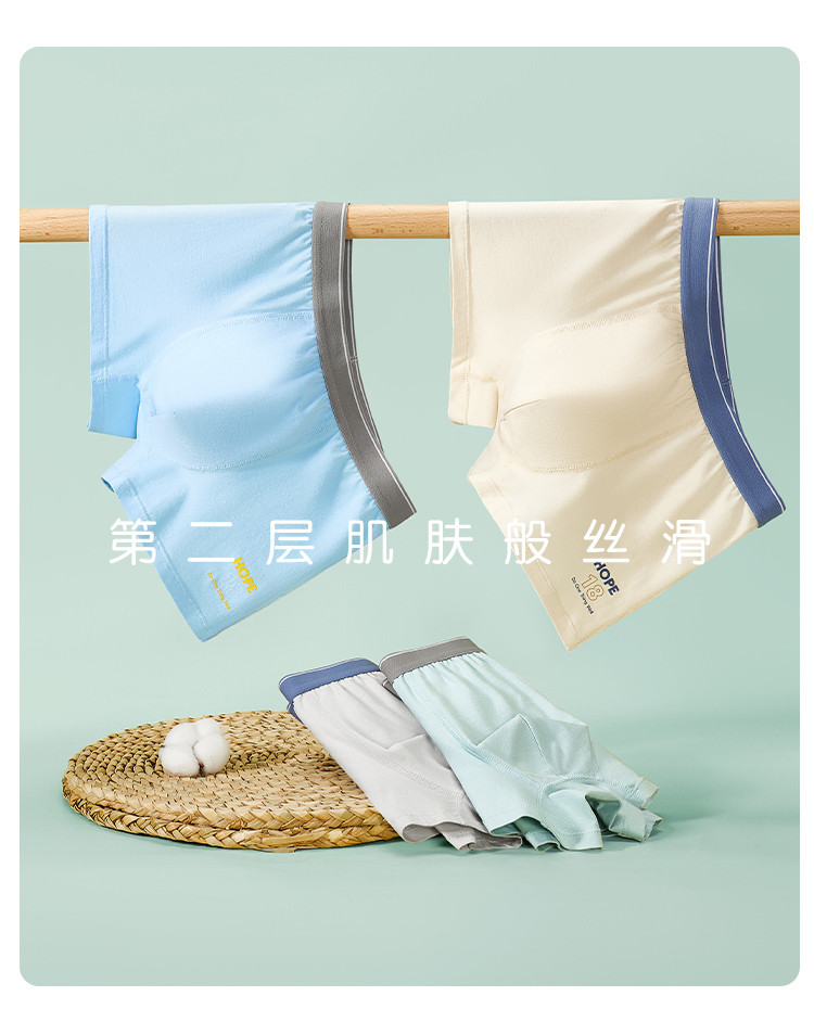 芬腾 长绒棉【4条装】透气青少年成长期内裤学生防磨腿四角裤内裤亲肤