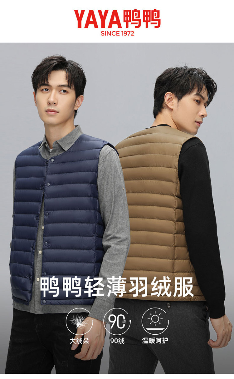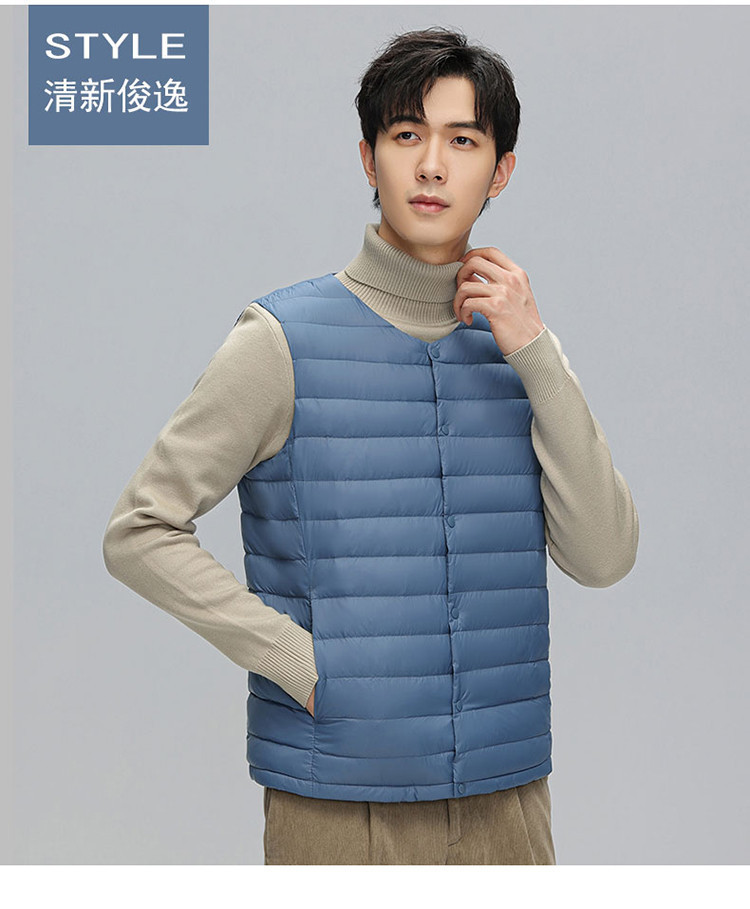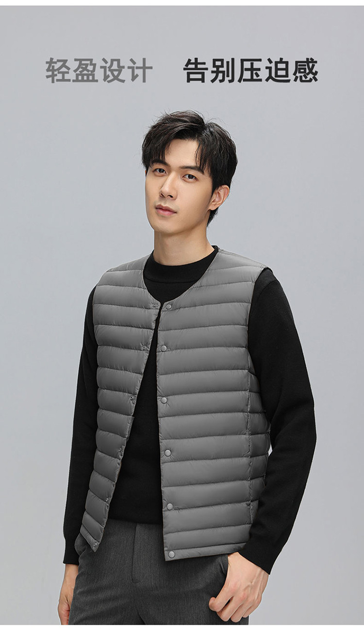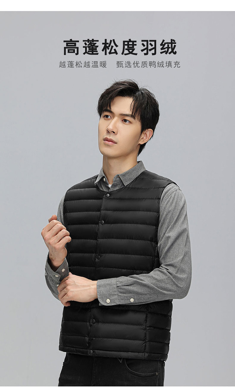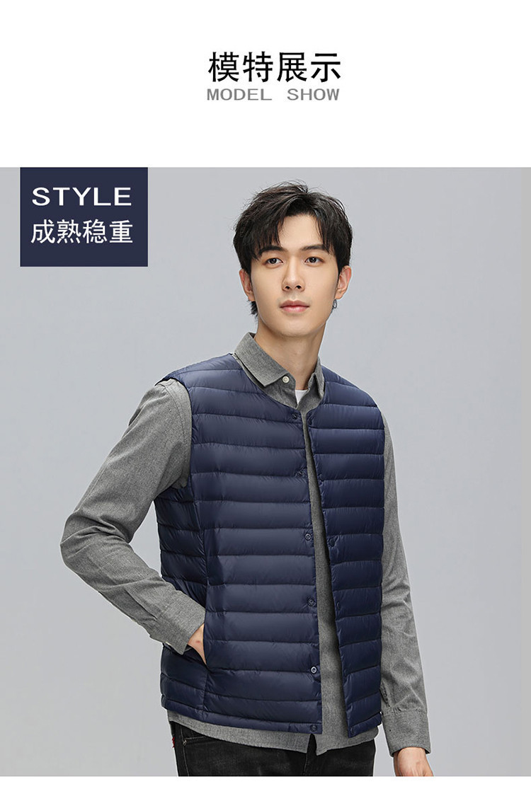 鸭鸭 冬季轻薄保暖时尚圆领内恤羽绒背心男士马夹