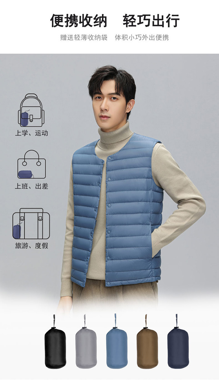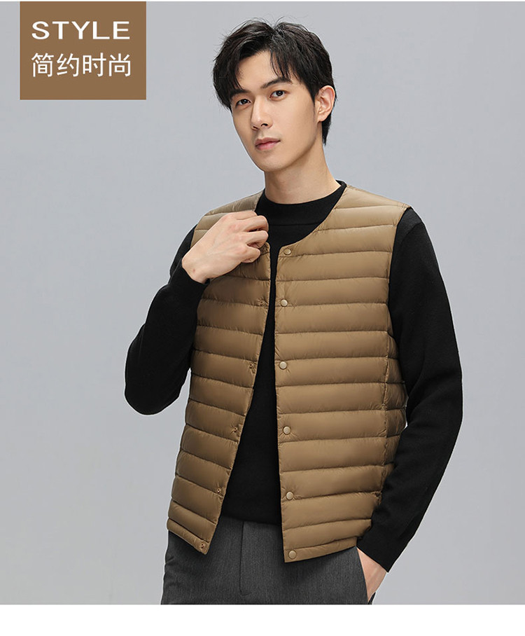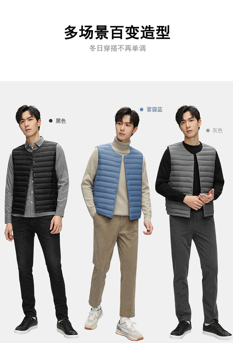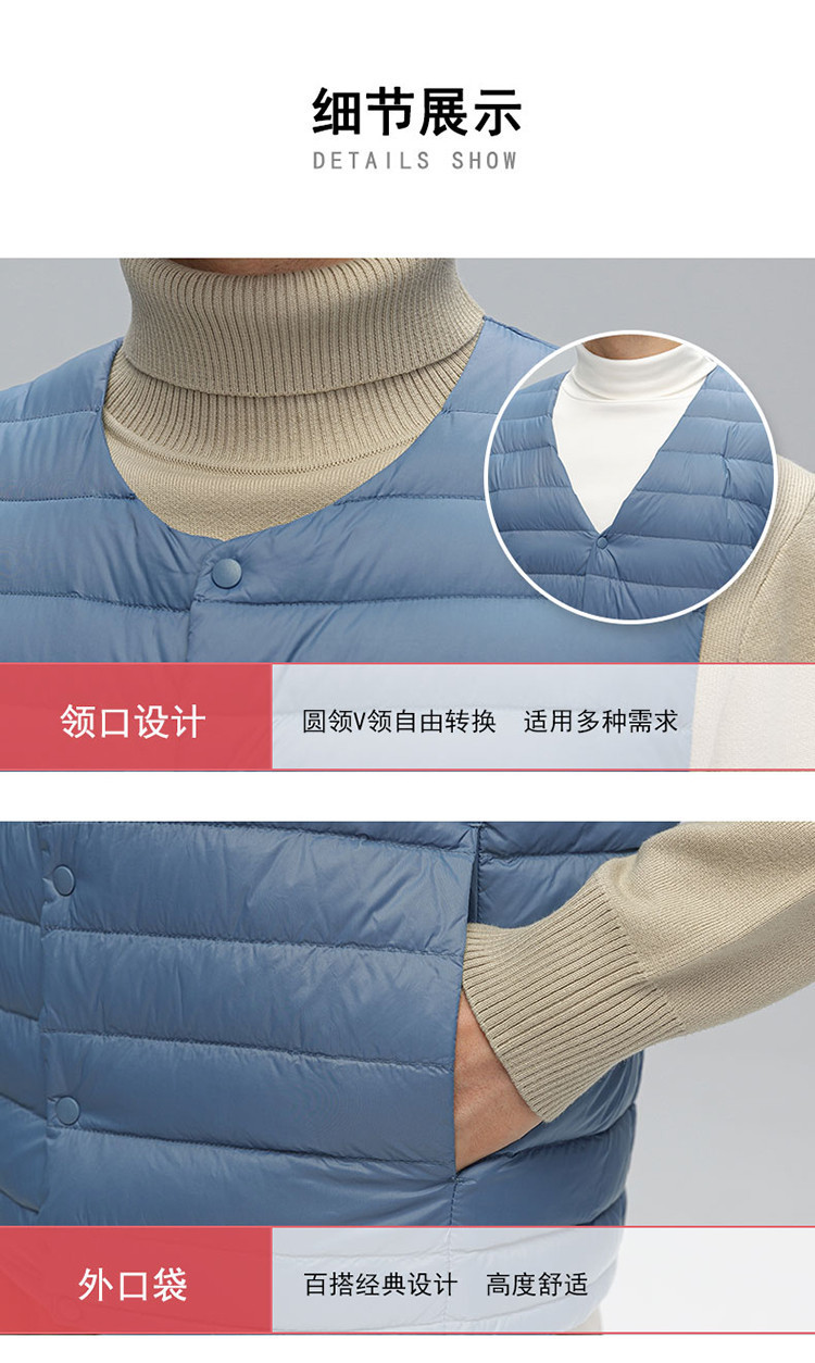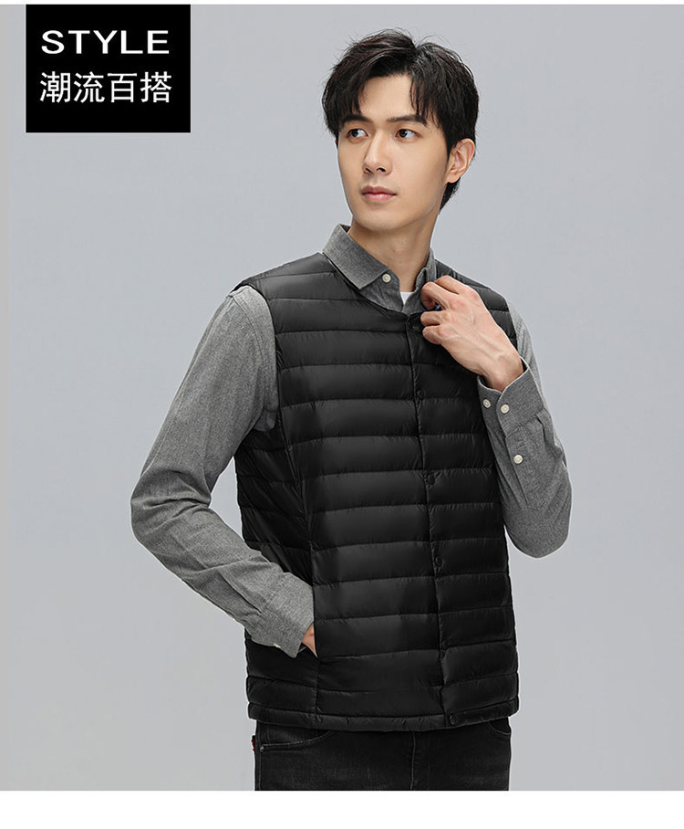 鸭鸭 冬季轻薄保暖时尚圆领内恤羽绒背心男士马夹