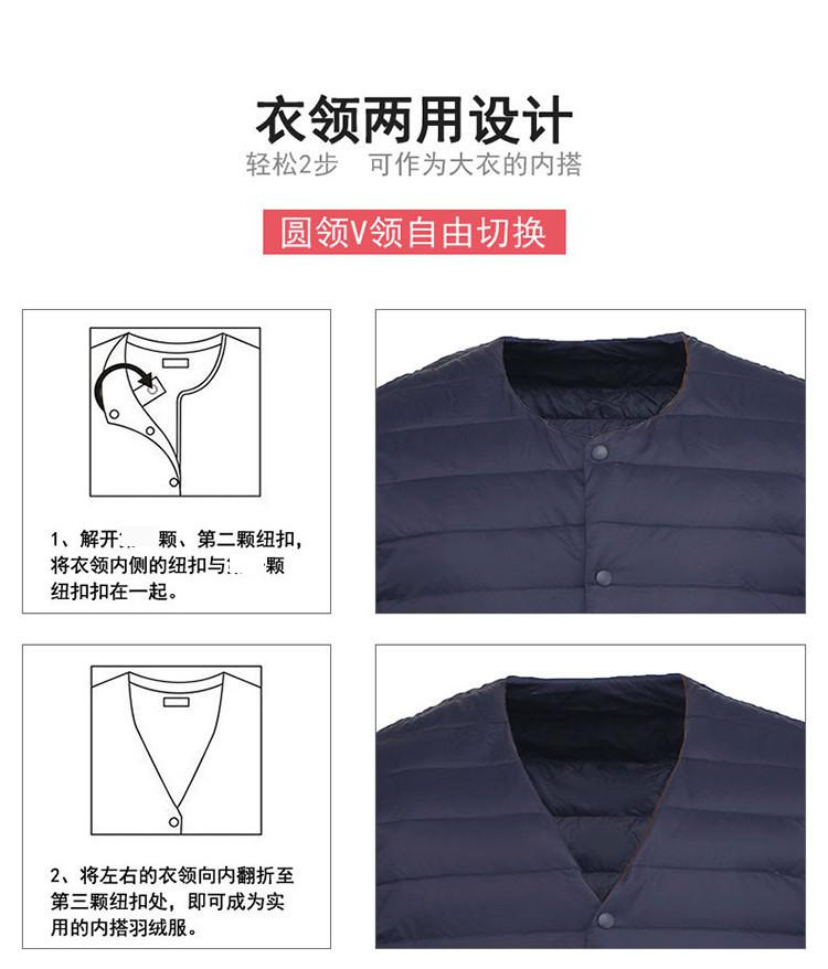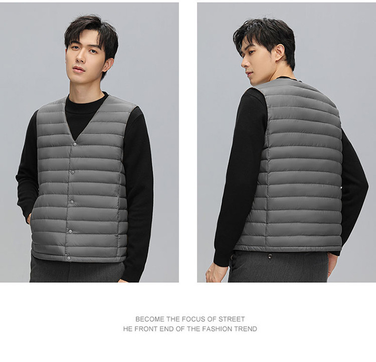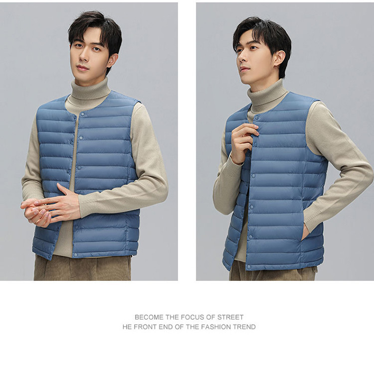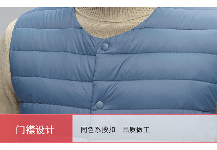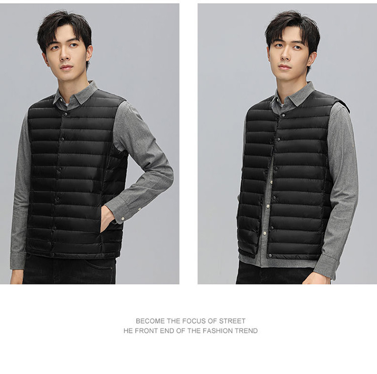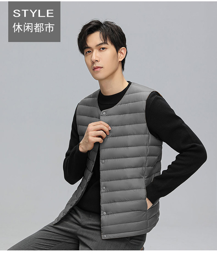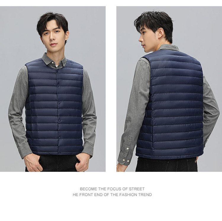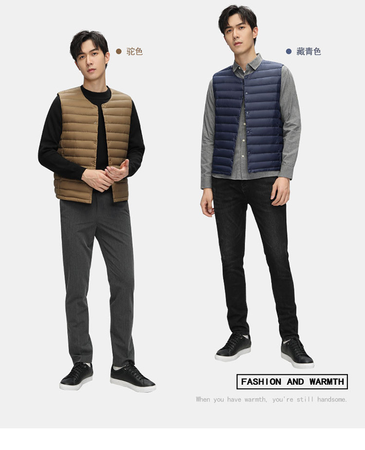 鸭鸭 冬季轻薄保暖时尚圆领内恤羽绒背心男士马夹