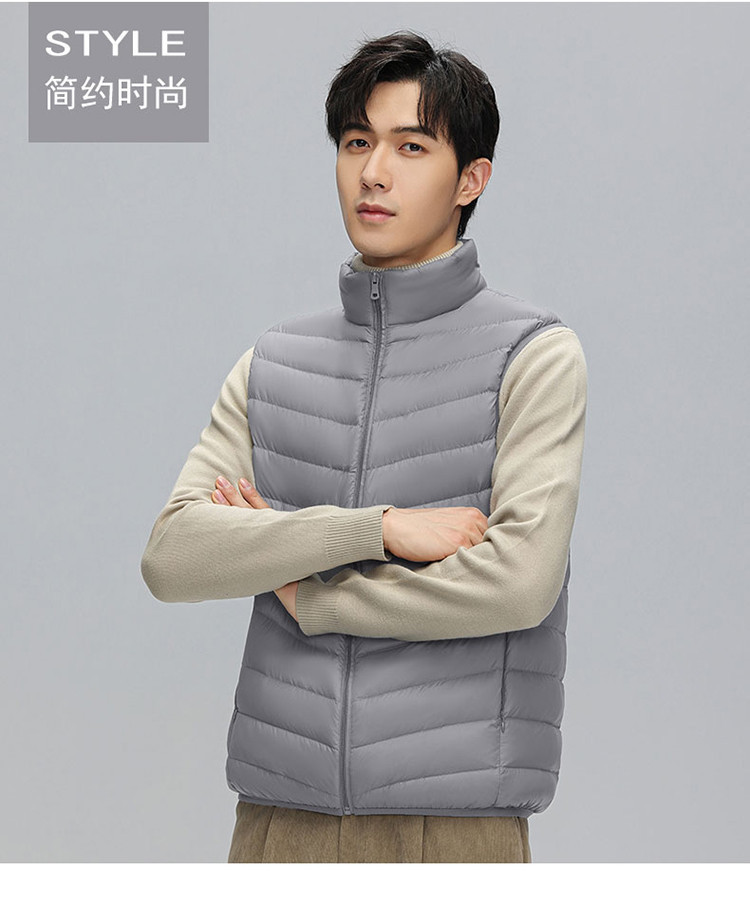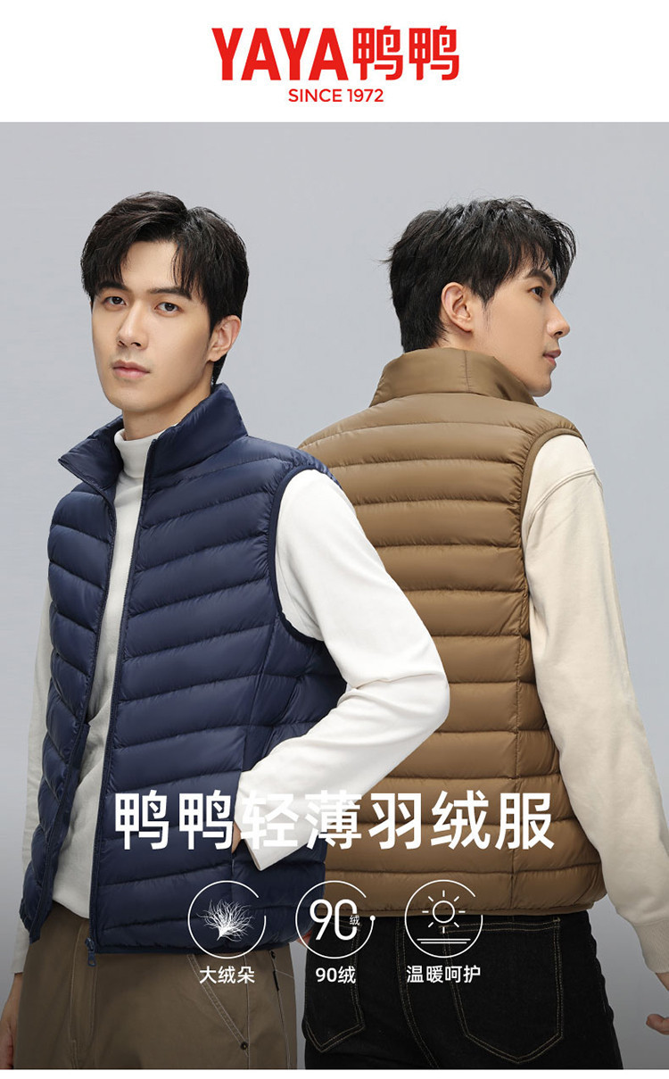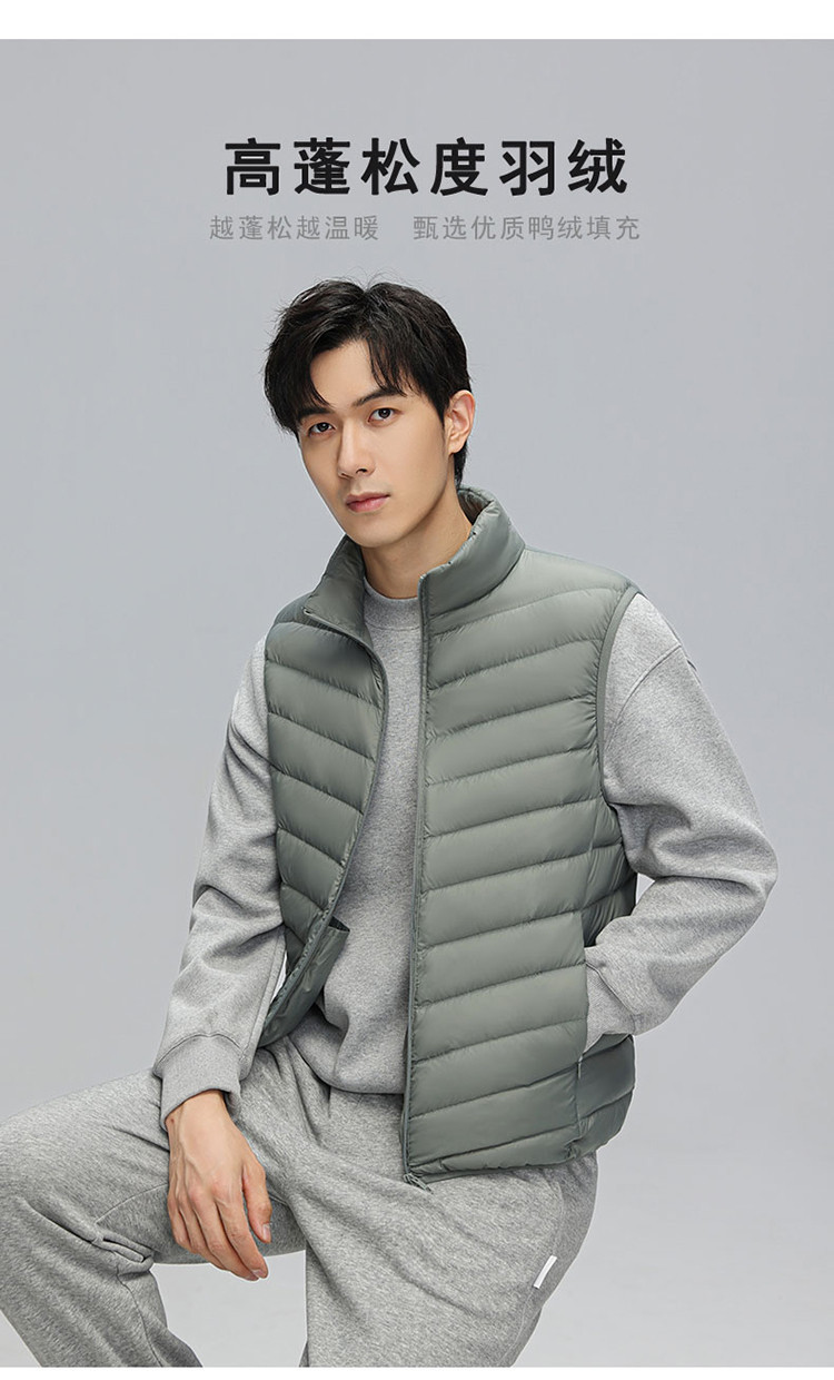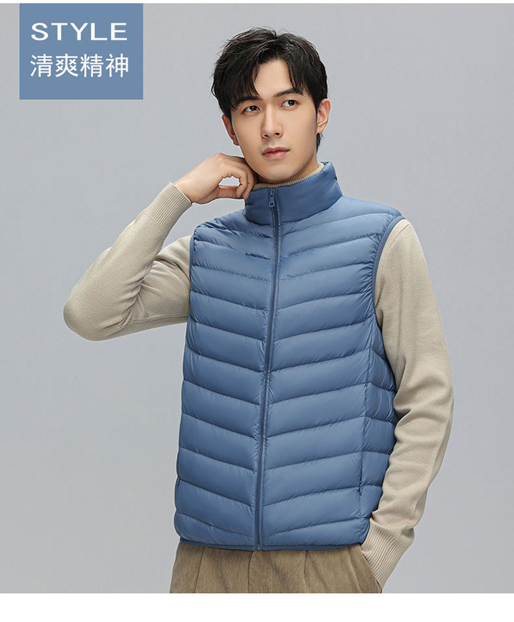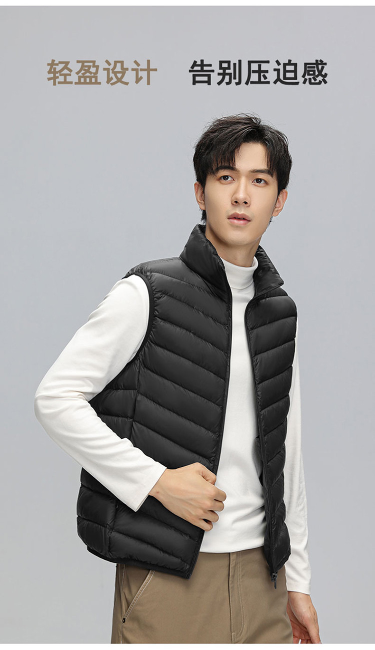 鸭鸭 冬季休闲保暖轻薄柔软外穿羽绒背心男士立领马夹男