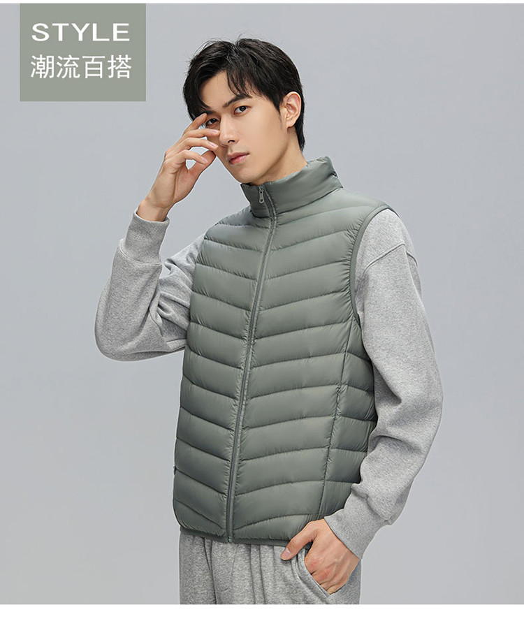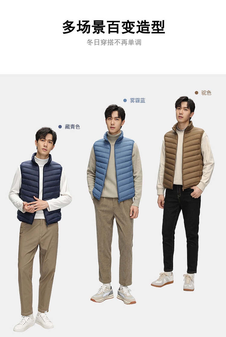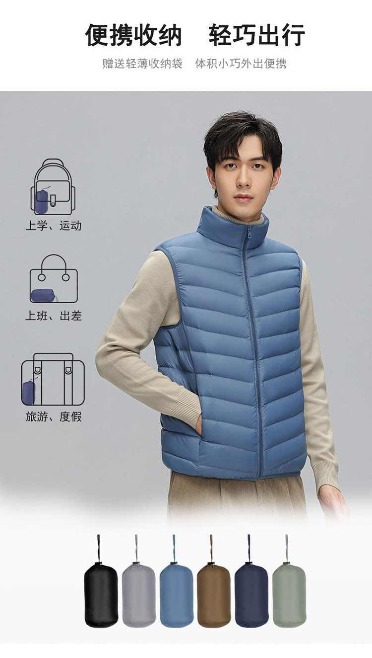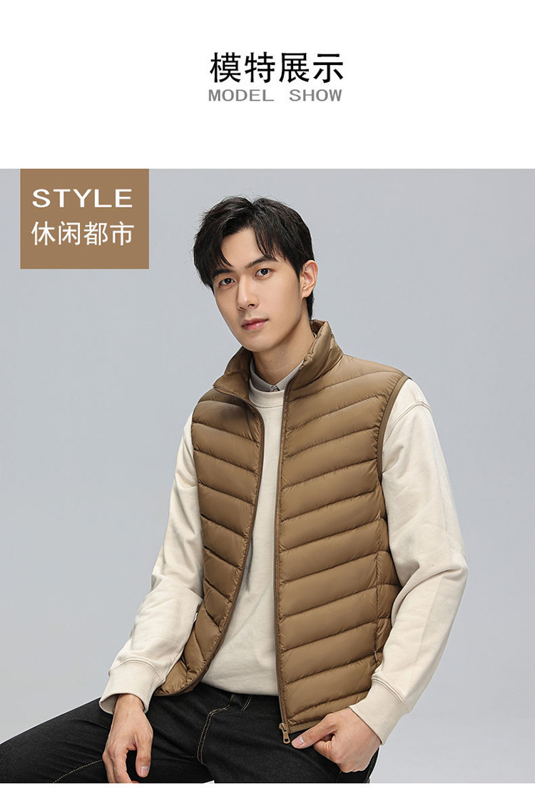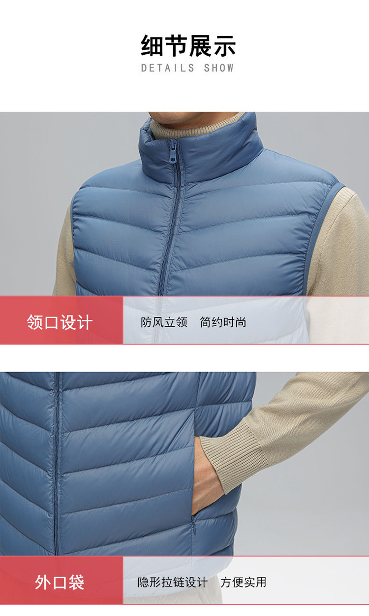 鸭鸭 冬季休闲保暖轻薄柔软外穿羽绒背心男士立领马夹男